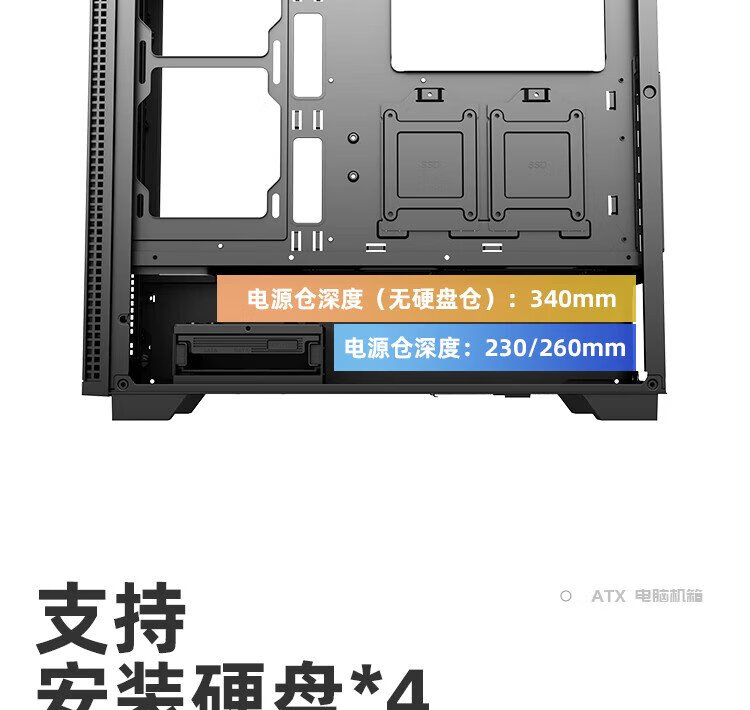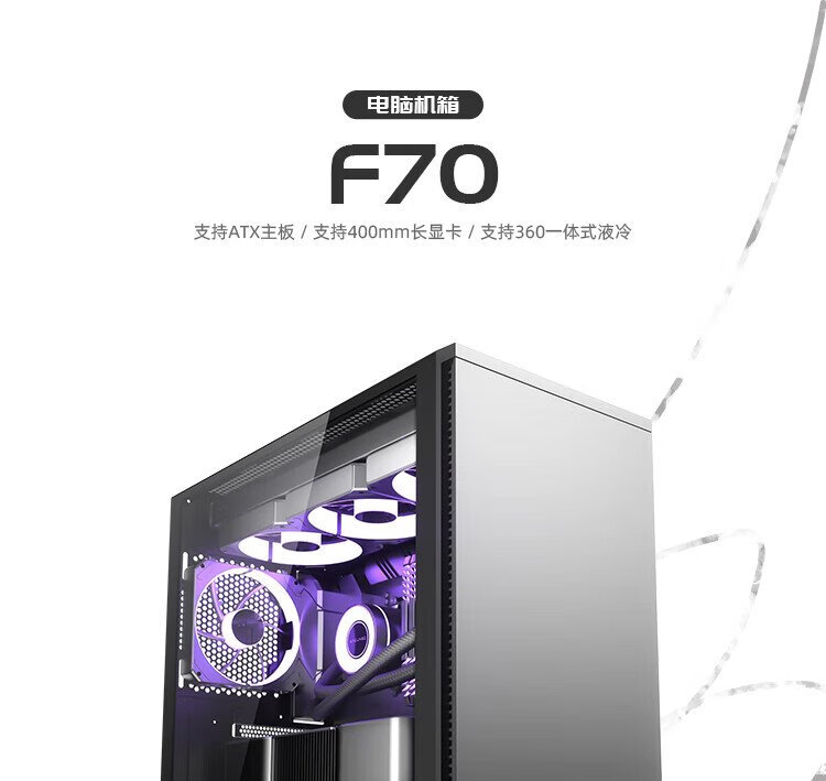 爱国者(aigo)F70 黑色 电脑主机箱 ATX台式大机箱(全侧透钢化玻璃/E-ATX主板/360水冷/支持40系显卡)