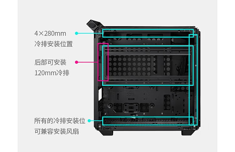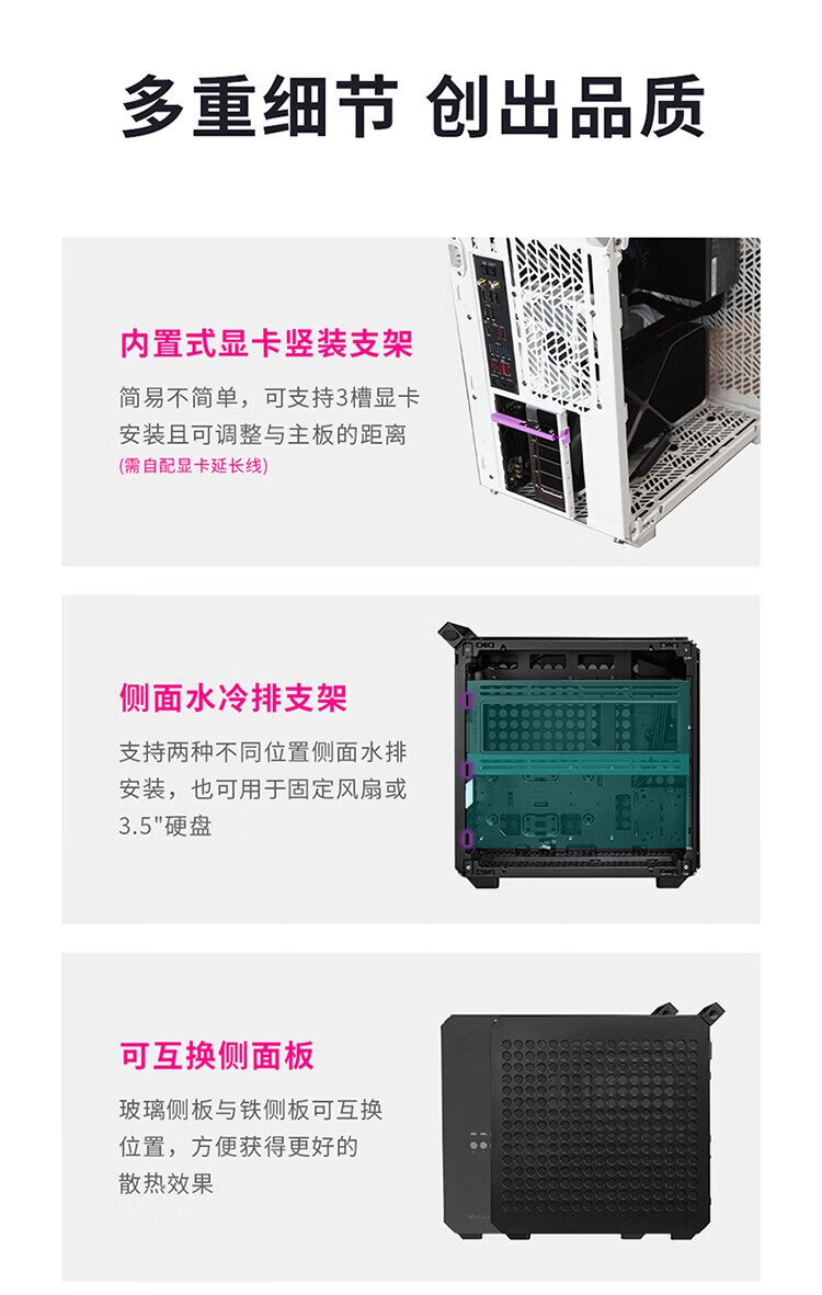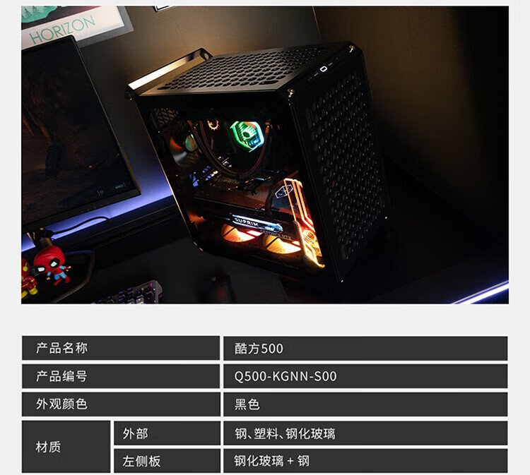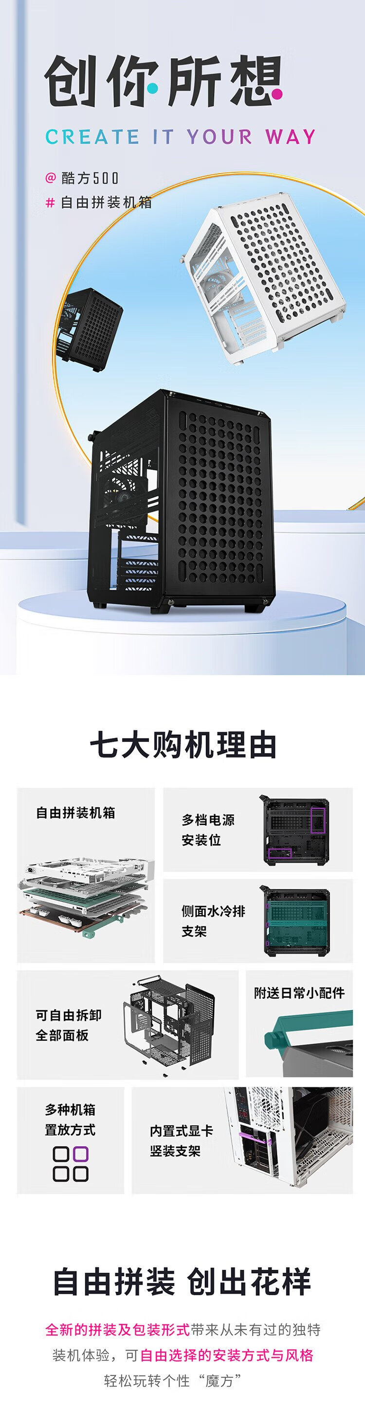 酷冷至尊(CoolerMaster)Qube酷方500 黑 EATX中塔电脑台式机箱 自由拼装/280散热水冷/钢玻侧板/7硬盘位