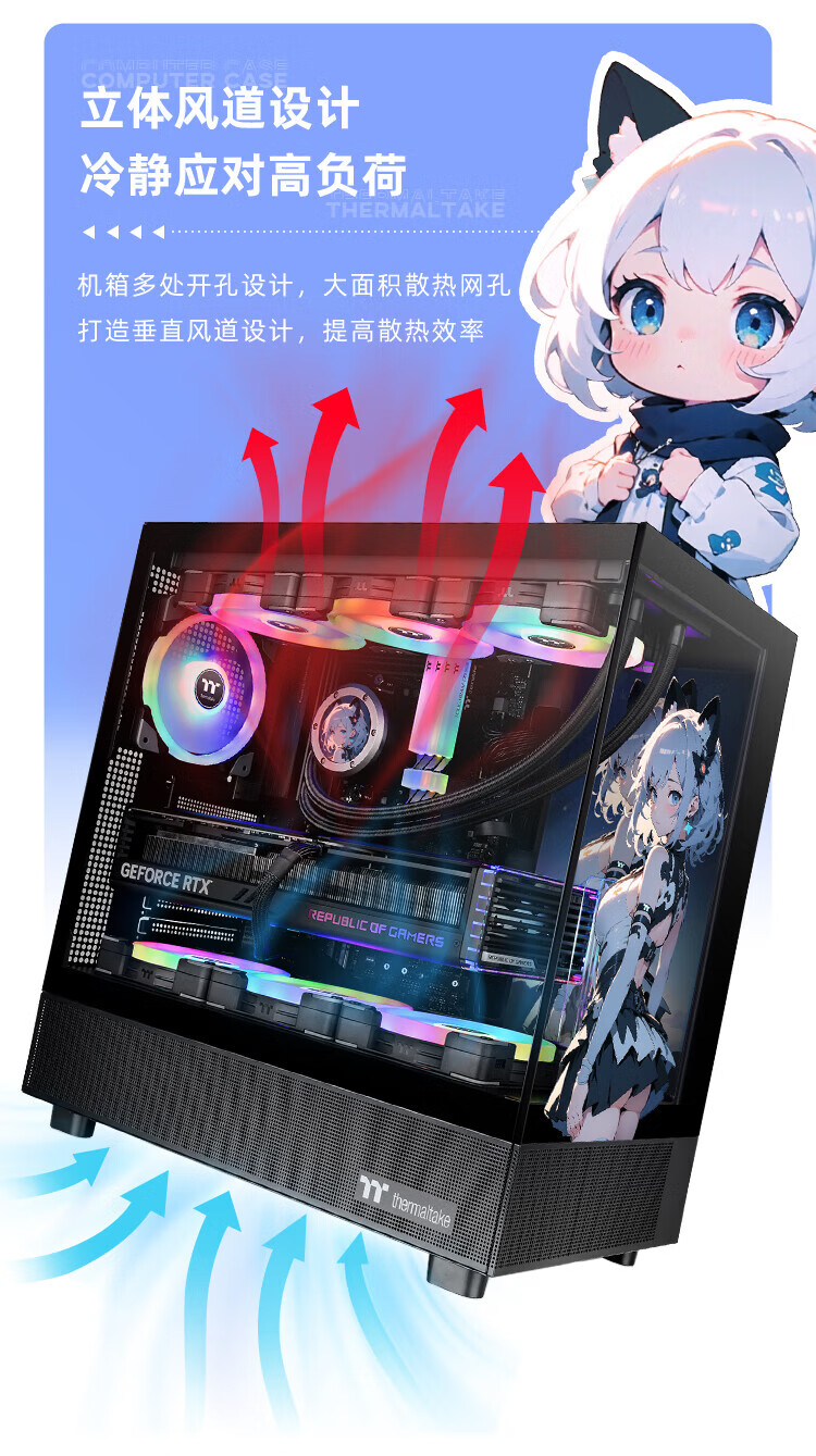 Thermaltake(Tt)钢影 透S 限定版 海景房机箱 电脑主机 黑色(ATX主板/支持360水冷/270°全景/9风扇位/4090显卡)