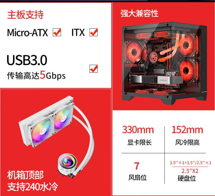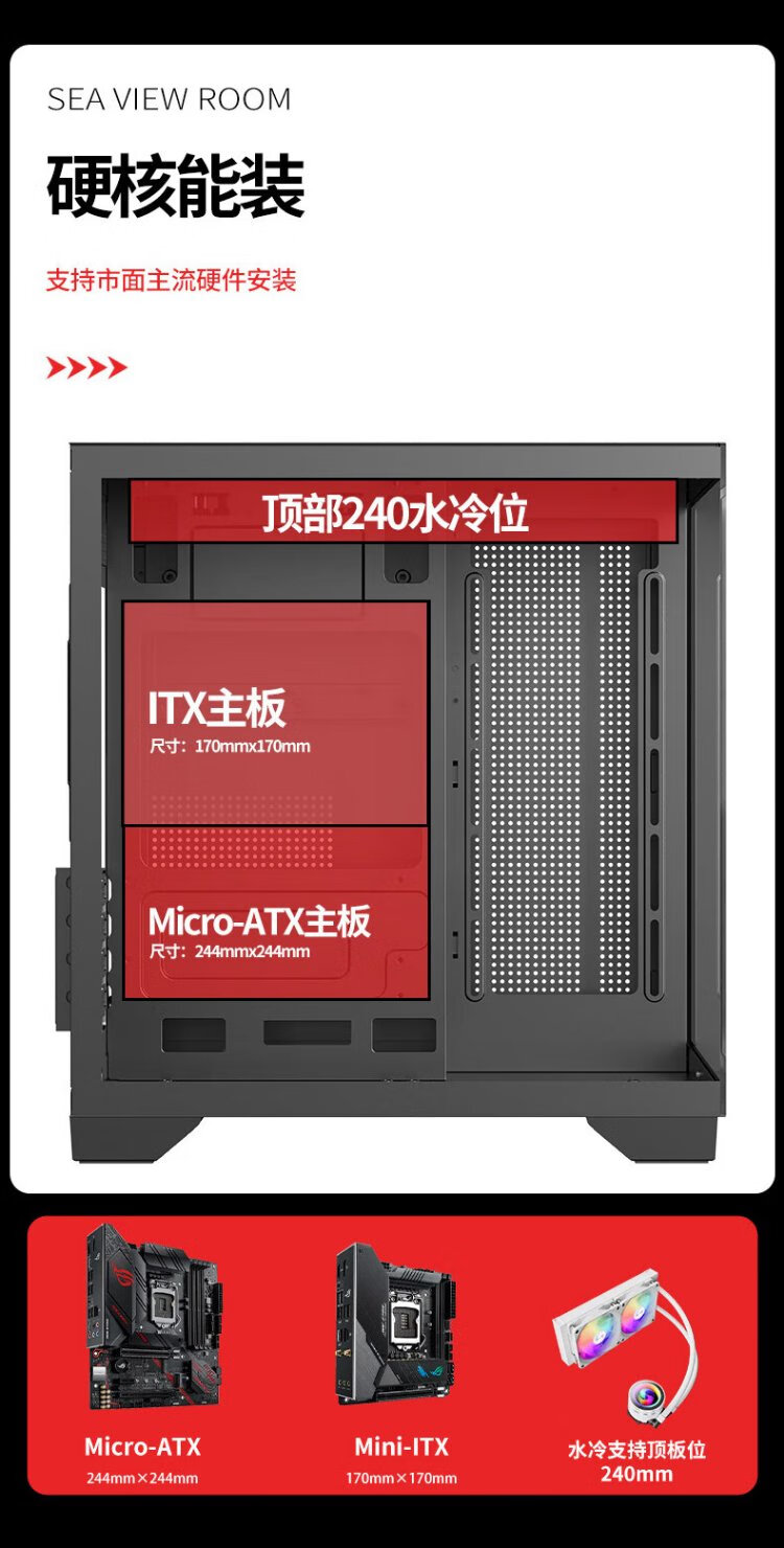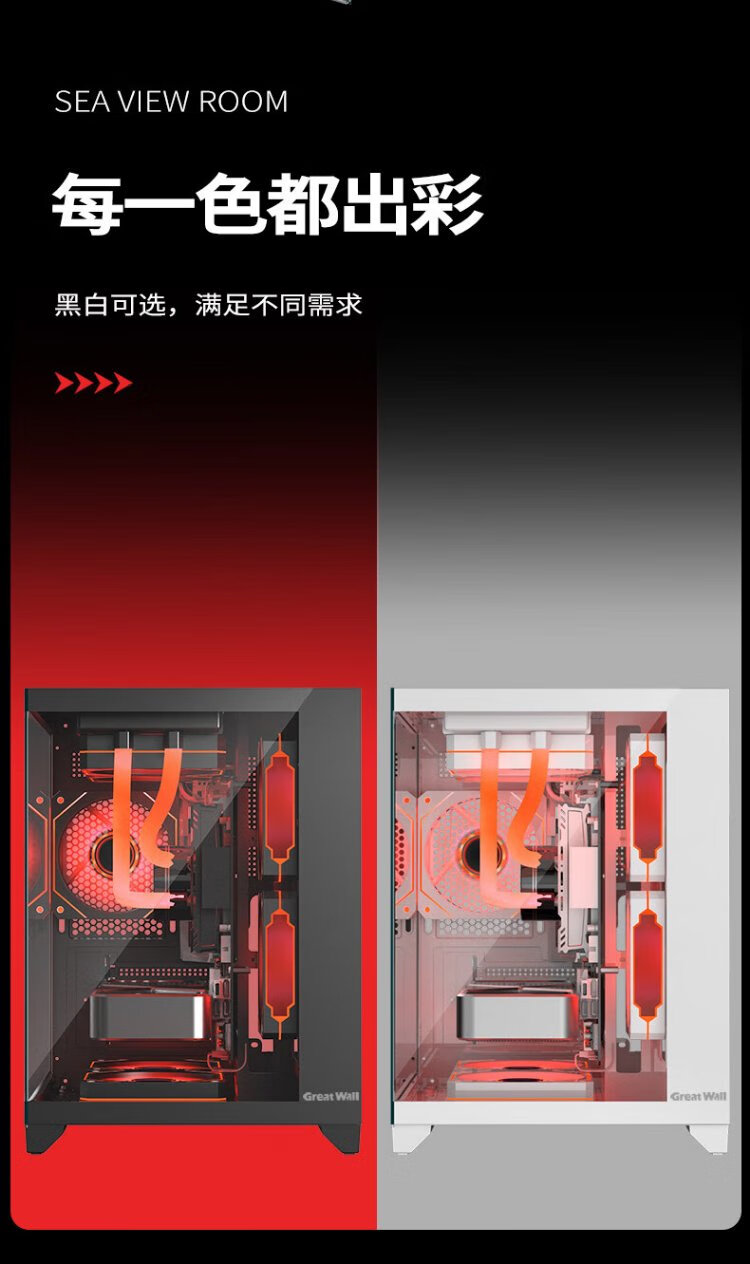 长城(Great Wall)视界S1W Mini白色海景房机箱(M-ATX/240水冷位/双面玻璃/7风扇位)