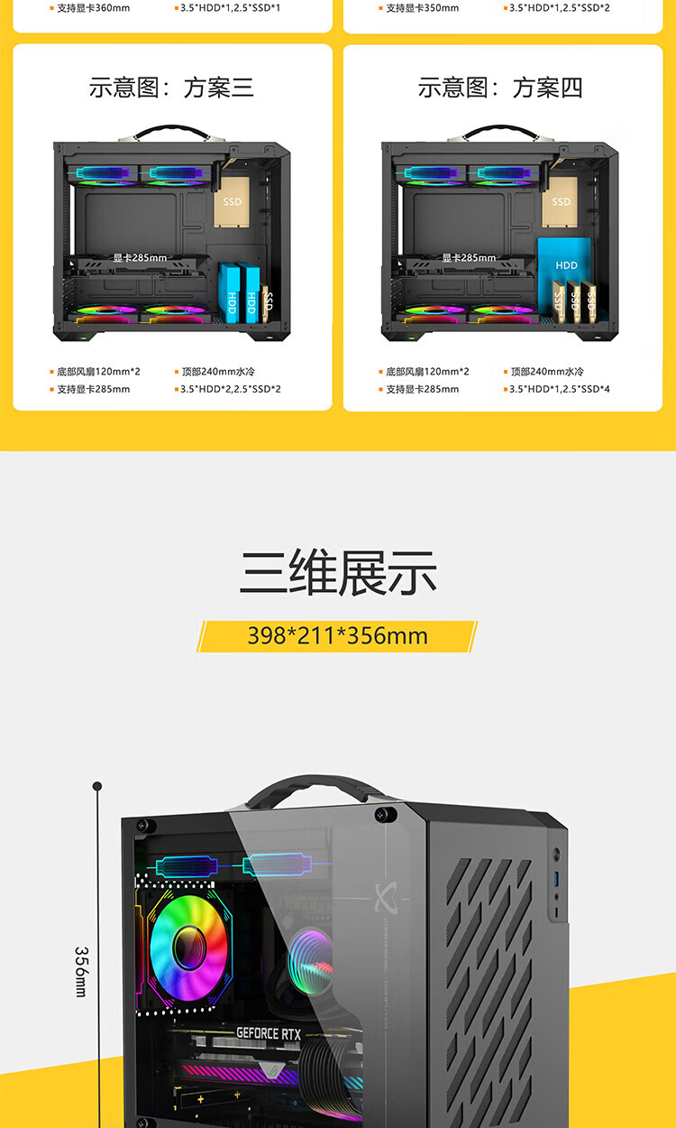 动力火车(PowerTrain)未知玩家X200白色MATX机箱玻璃侧透立式桌面便携式手提ITX外壳 Type-C接口 支持240水冷 6风扇位