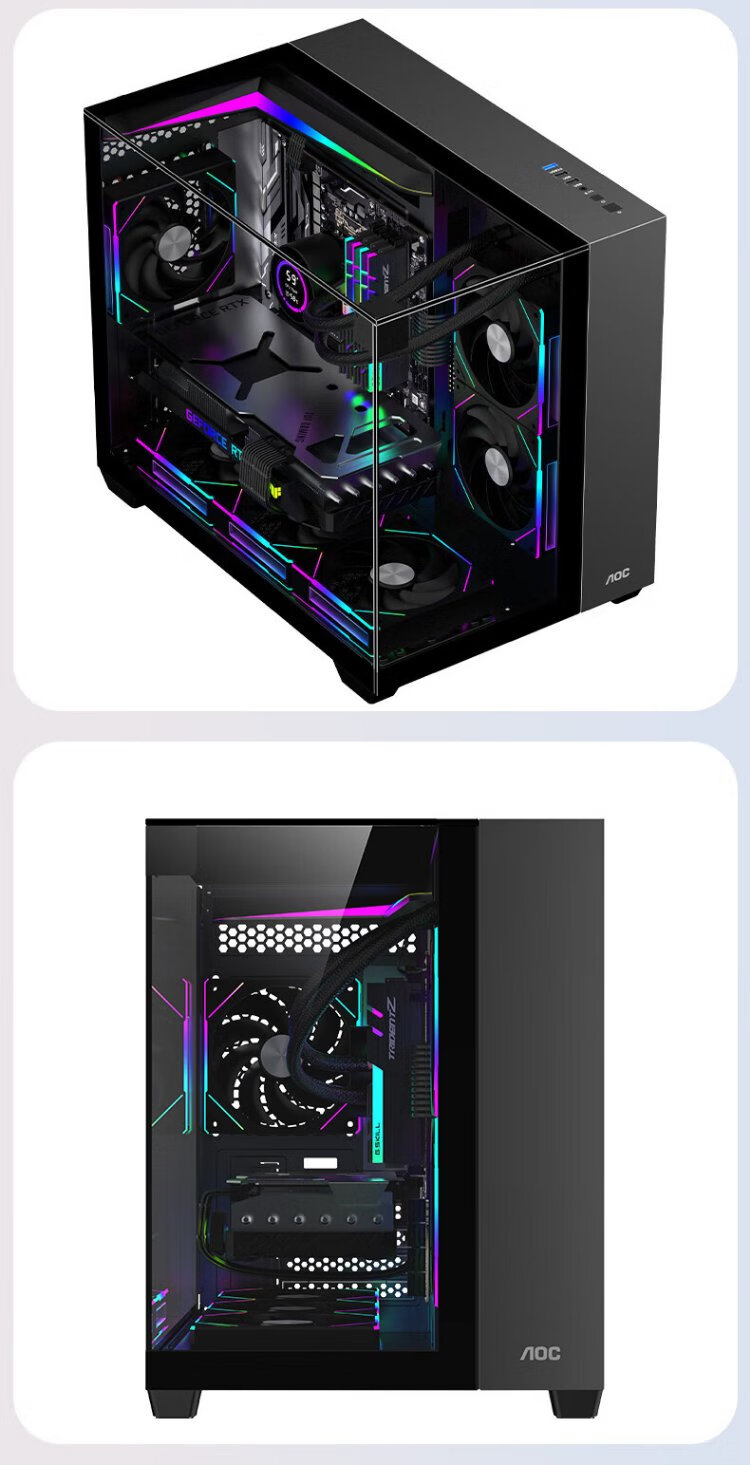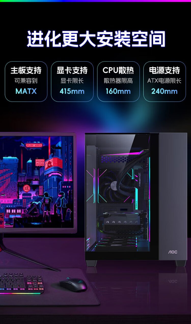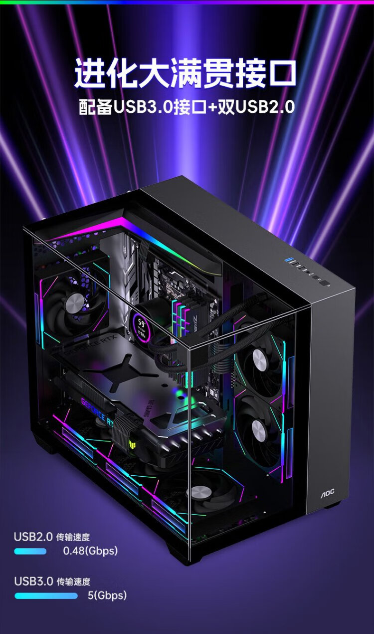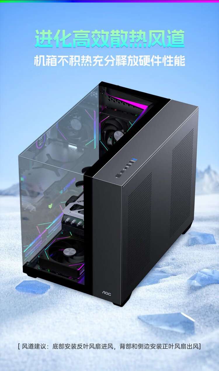 AOC星海CG399M黑色 游戏电脑海景房机箱 3D立体全景/三面玻璃/快拆设计/支持M-ATX主板/240水冷位