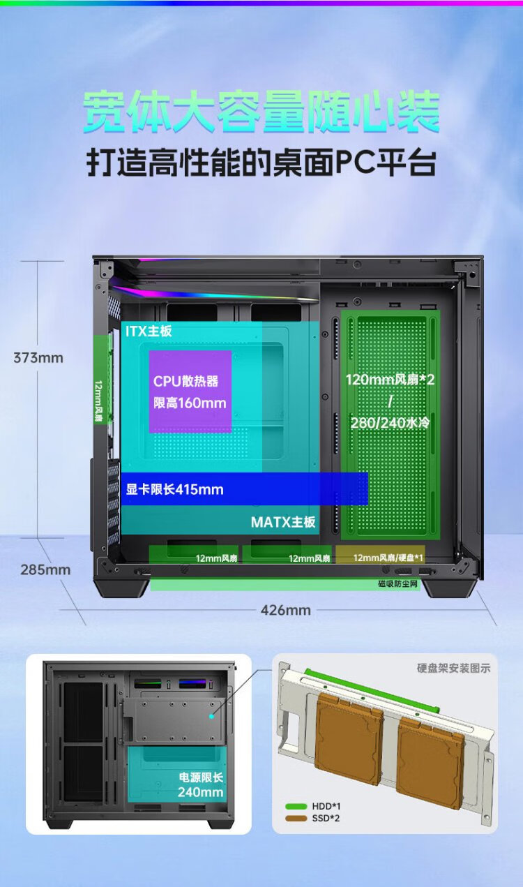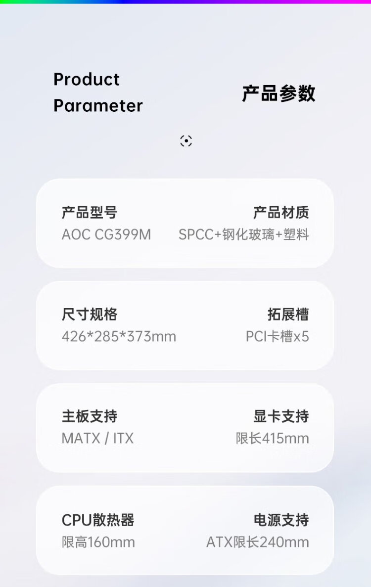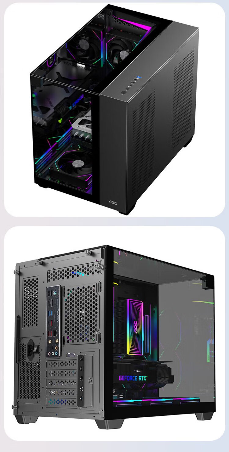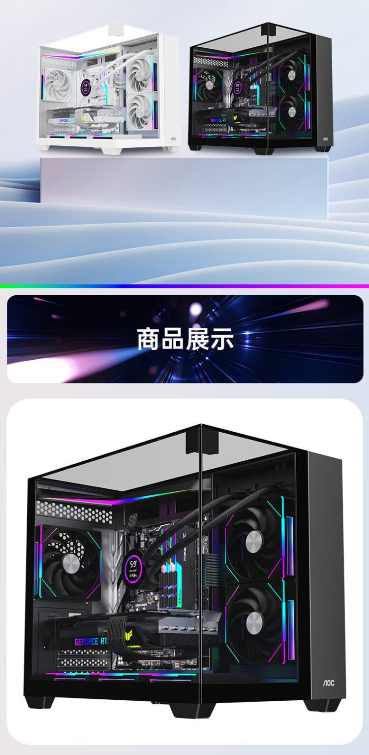 AOC星海CG399M黑色 游戏电脑海景房机箱 3D立体全景/三面玻璃/快拆设计/支持M-ATX主板/240水冷位