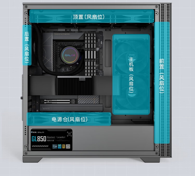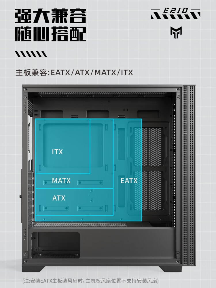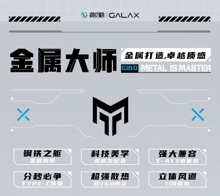 GALAXY Metal Master E210 Desktop-Computergehäuse (zwei Seitenteile aus Eisen/TYP-C/kompatibel mit E-ATX/unterstützt 360-Grad-Wasserkühlung/11 Lüfterpositionen/Farbe: Schlachtschiffgrau)