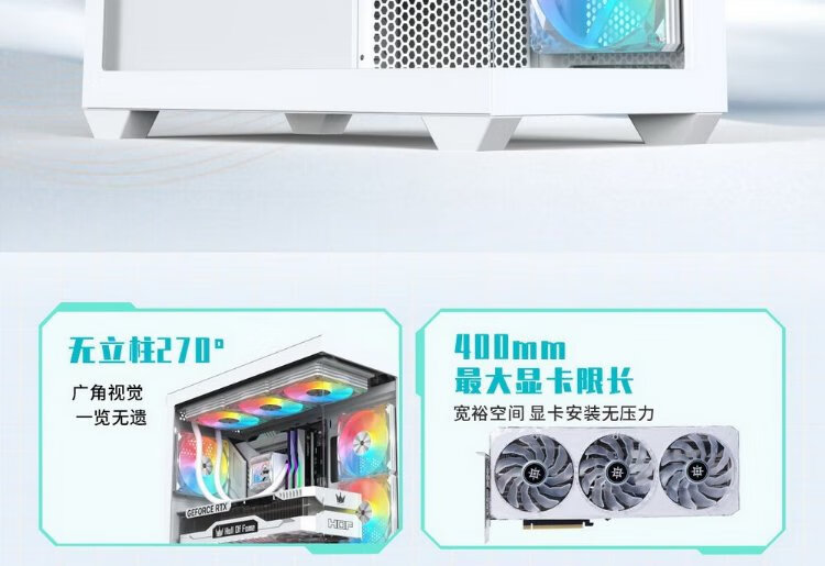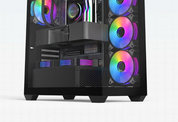 影驰极光3海景房电脑机箱黑色(无立柱全视版/兼容E-ATX/支持360水冷/快拆侧板/可装40系长显卡)