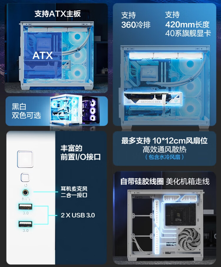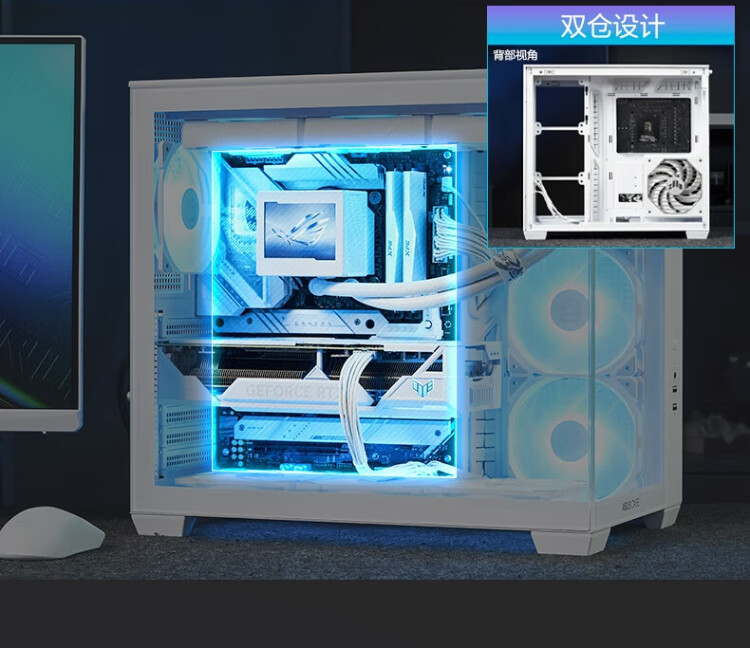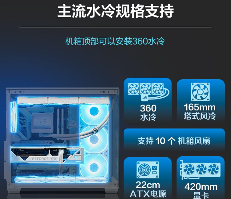 华硕海王星 黑色全视海景房机箱 双仓设计/支持360水冷/免工具拆卸/最大10风扇支持/无立柱设计