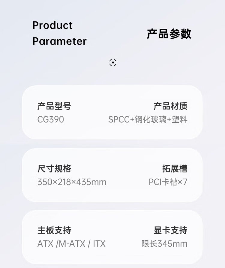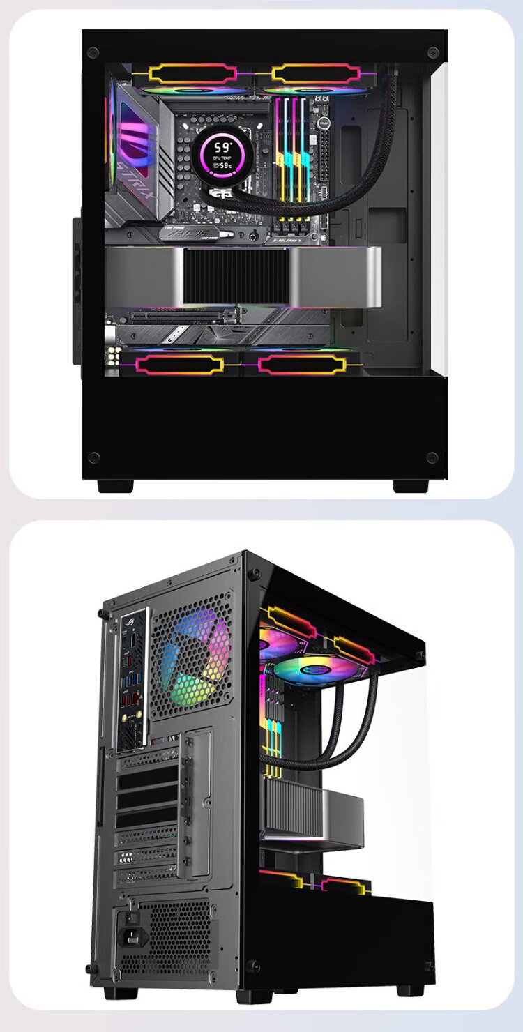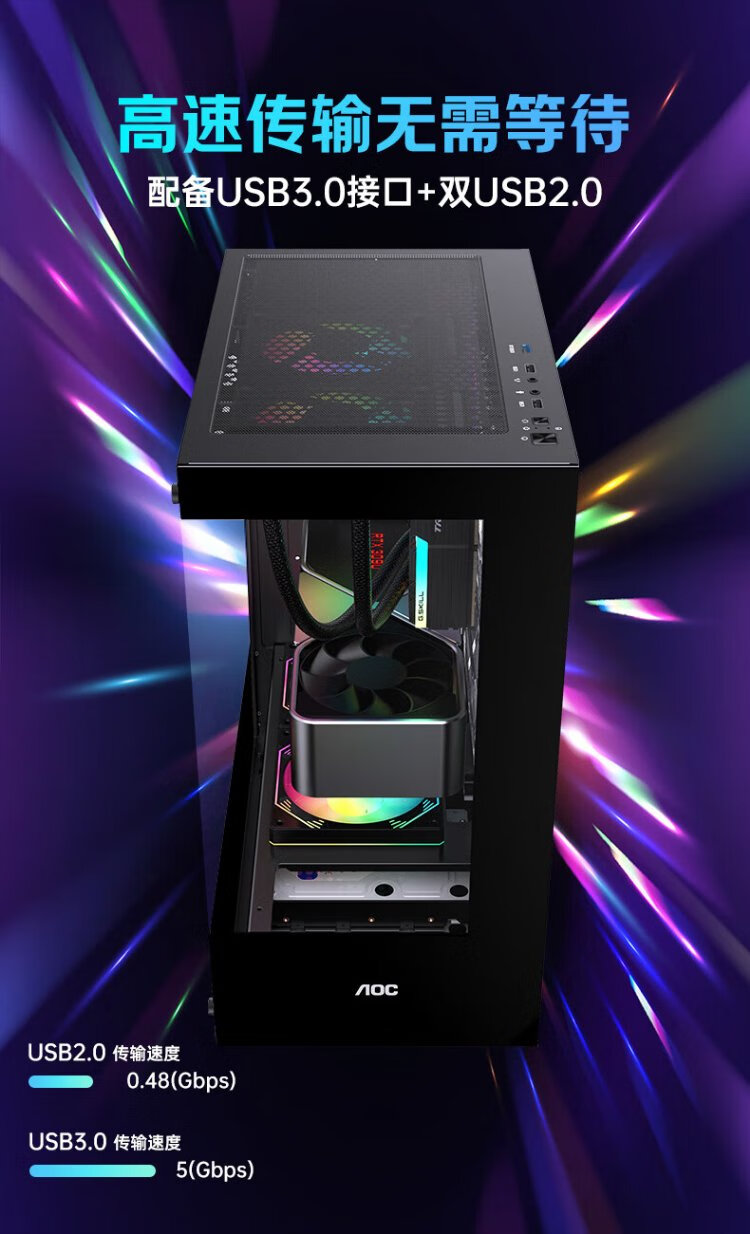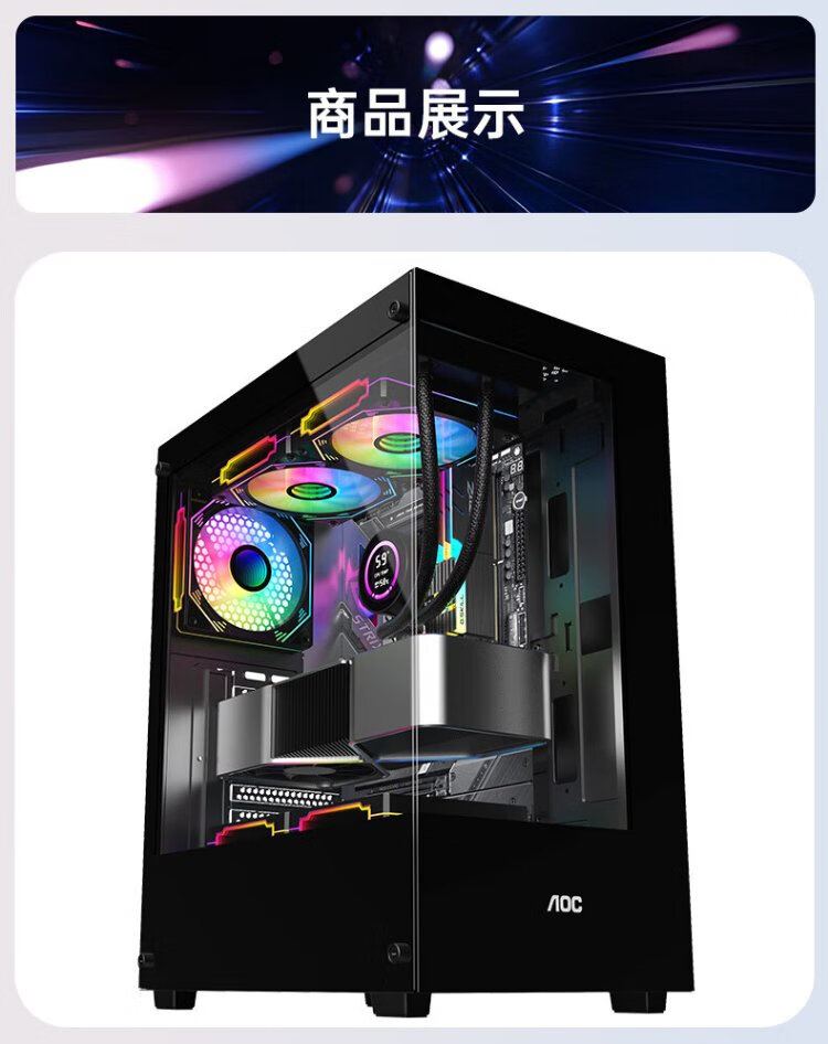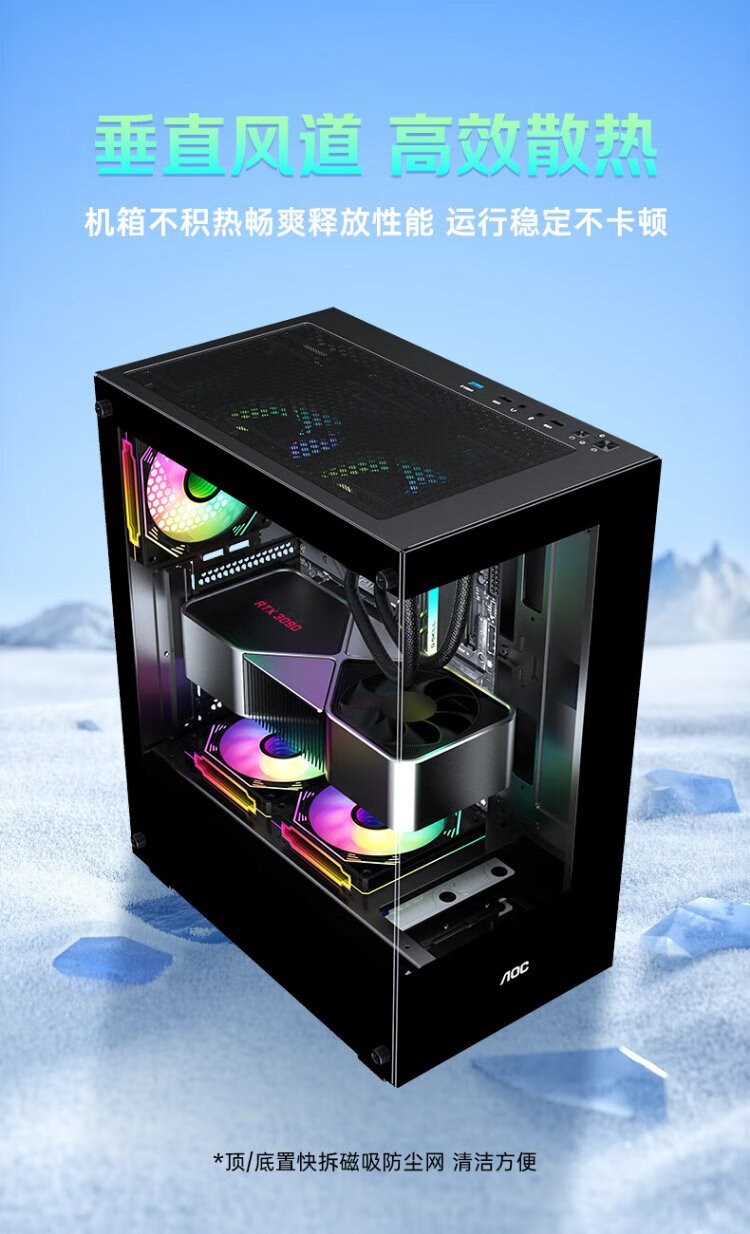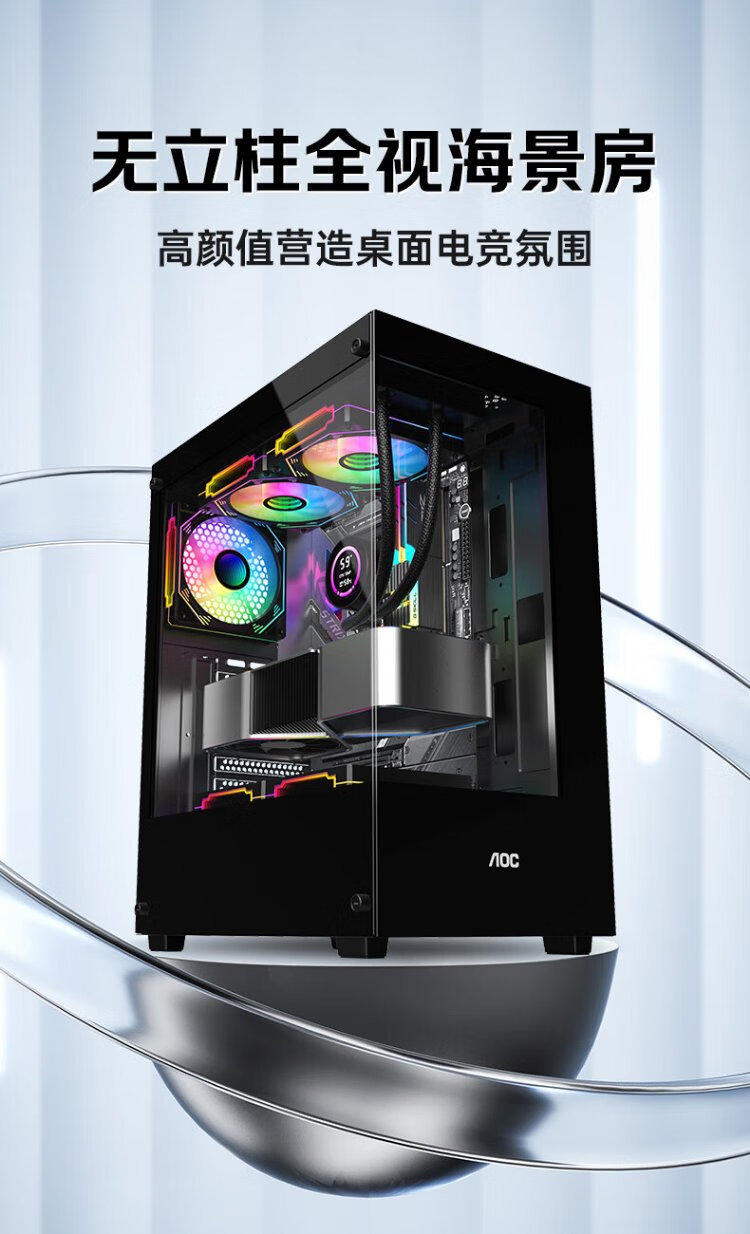 AOCCG390B黑色 游戏电脑主机海景房机箱 双面玻璃/支持ATX主板/240水冷/5风扇位/270°全景/上下分仓