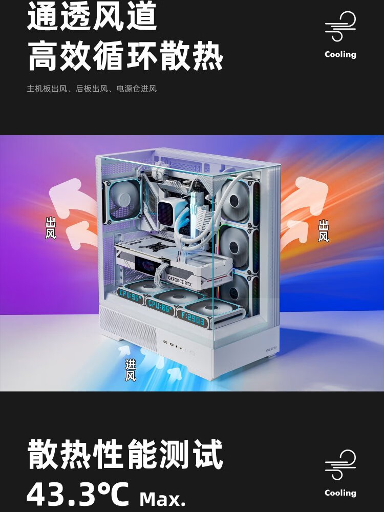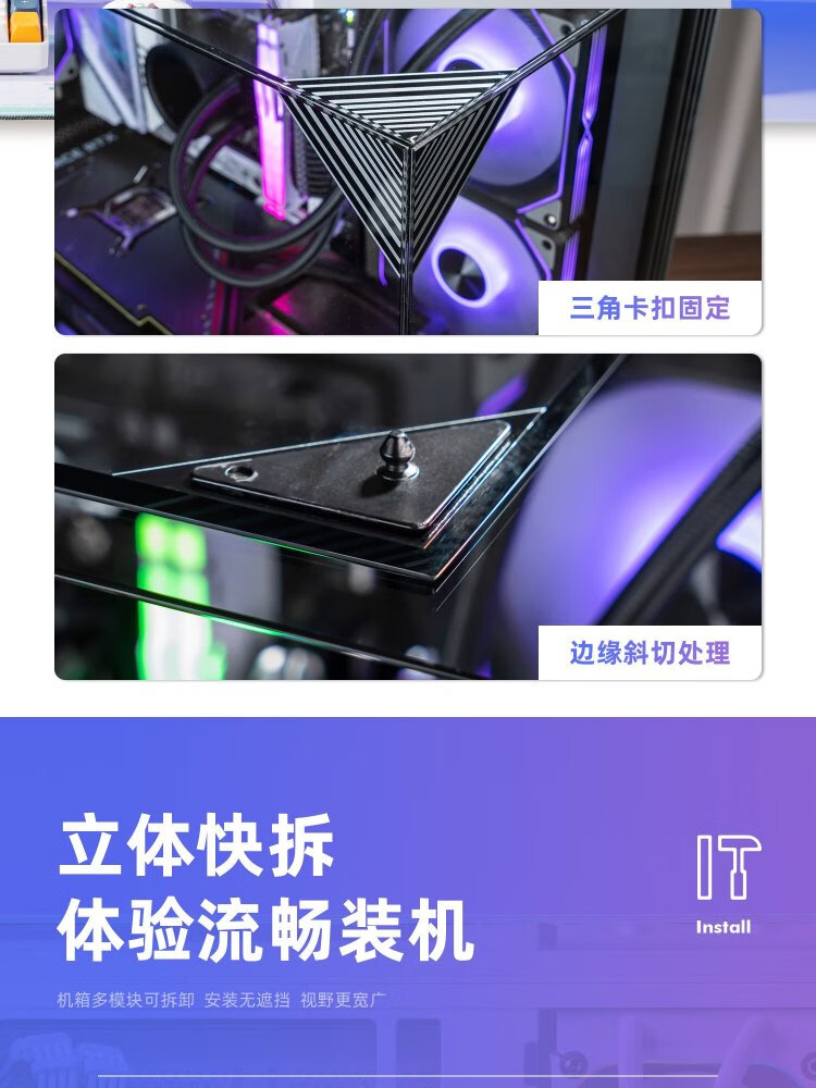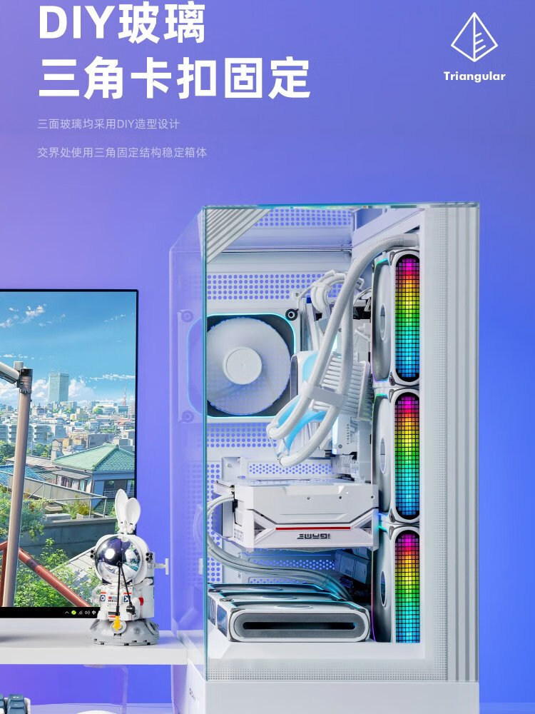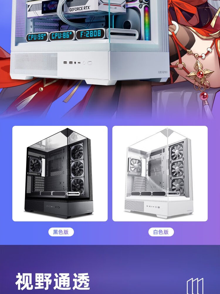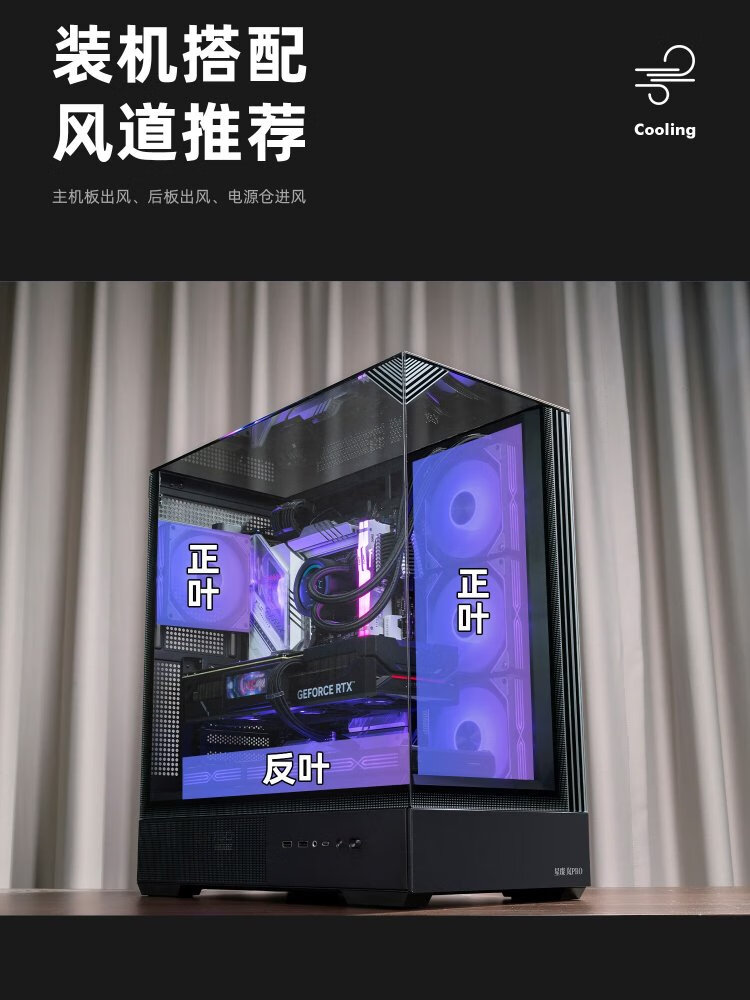 Aigo Xingcanlan PRO schwarzes Gaming-Computer-Desktop-Host-Gehäuse unterstützt 360-Grad-Wasserkühlung, dreiseitiger Glasraum mit Meerblick, ATX-Motherboard, vierseitiger Schnellverschluss, 5090-Grafikkarte