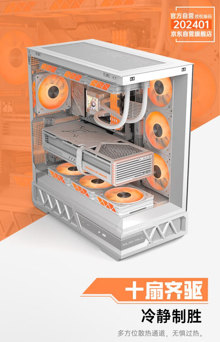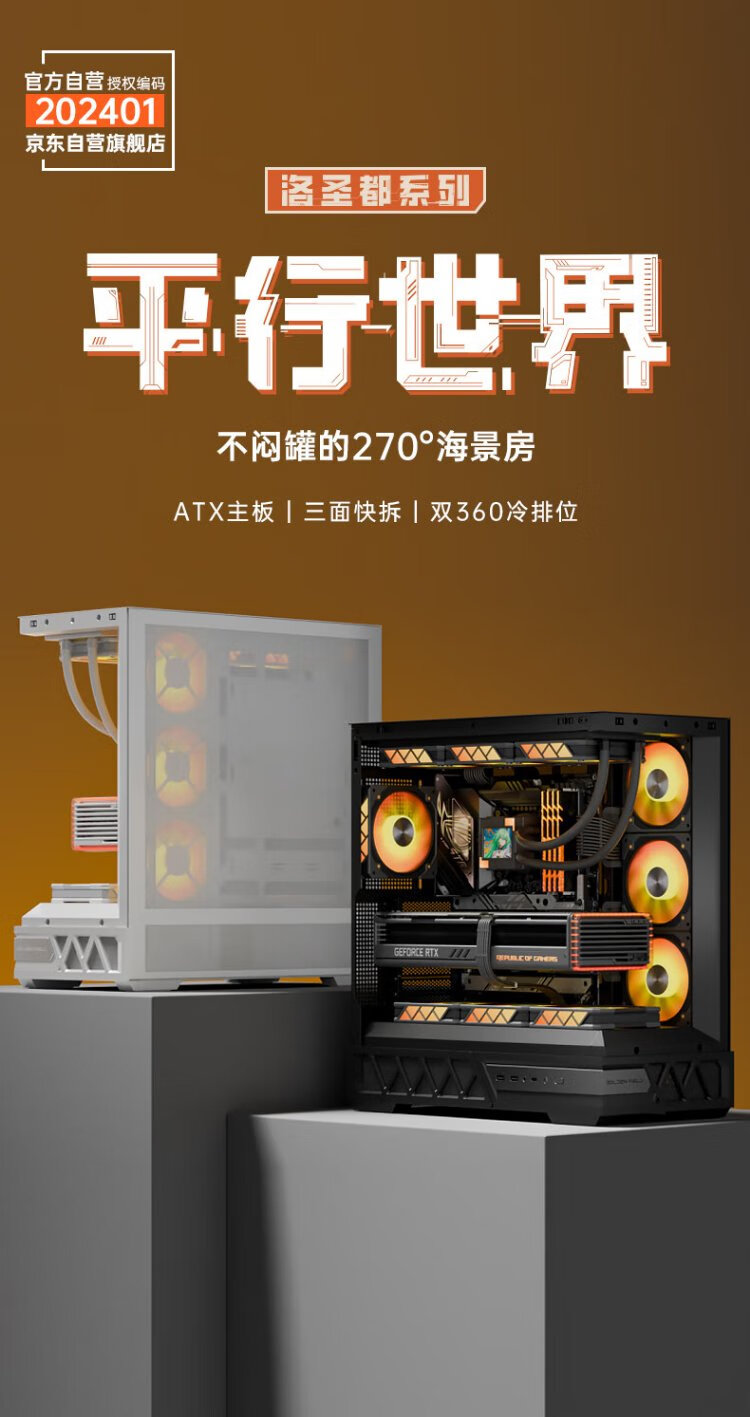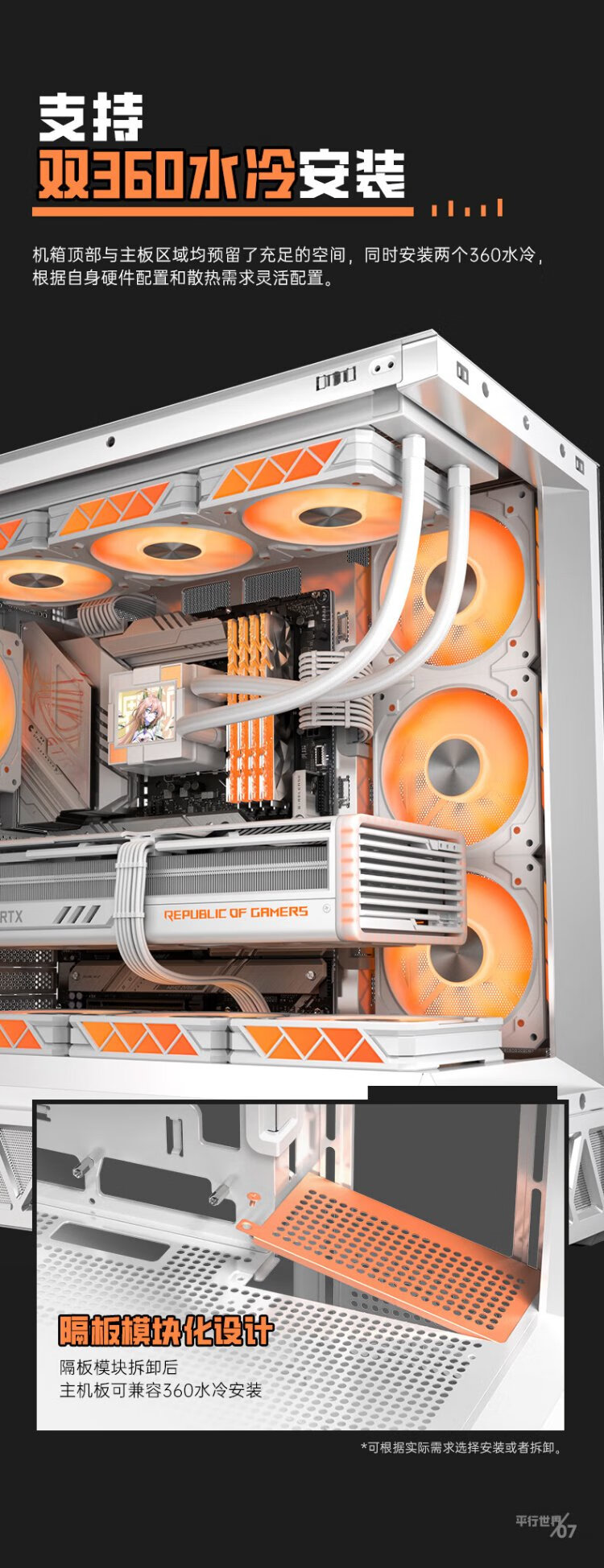 Golden field parallel world white gaming computer desktop host case compatible with dual 360 water-cooled ATX motherboards/three-sided quick release/supports back insertion/270 sea view room