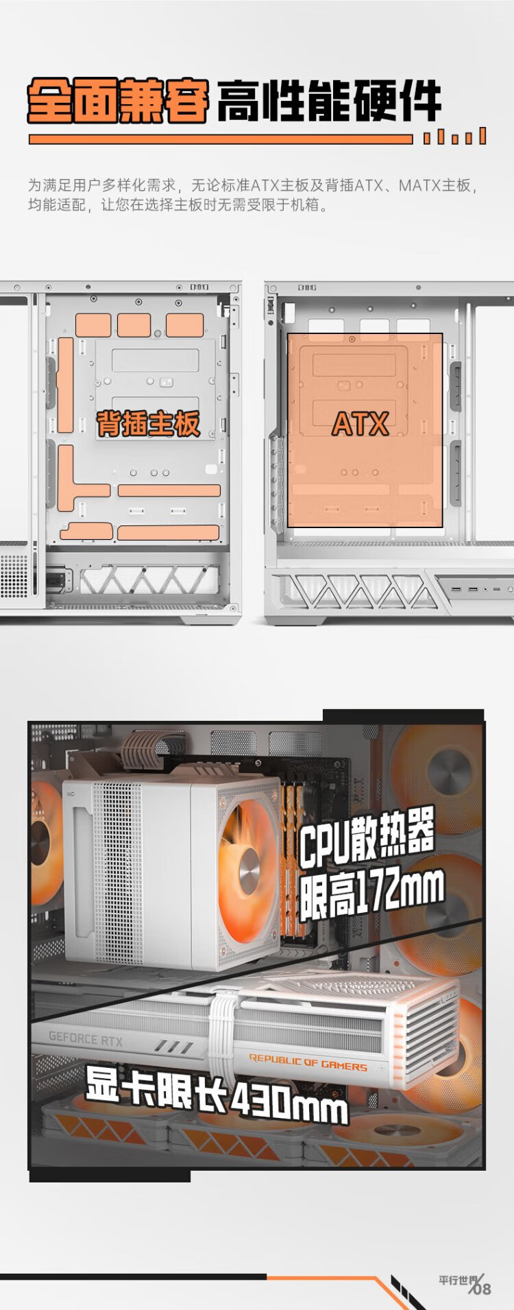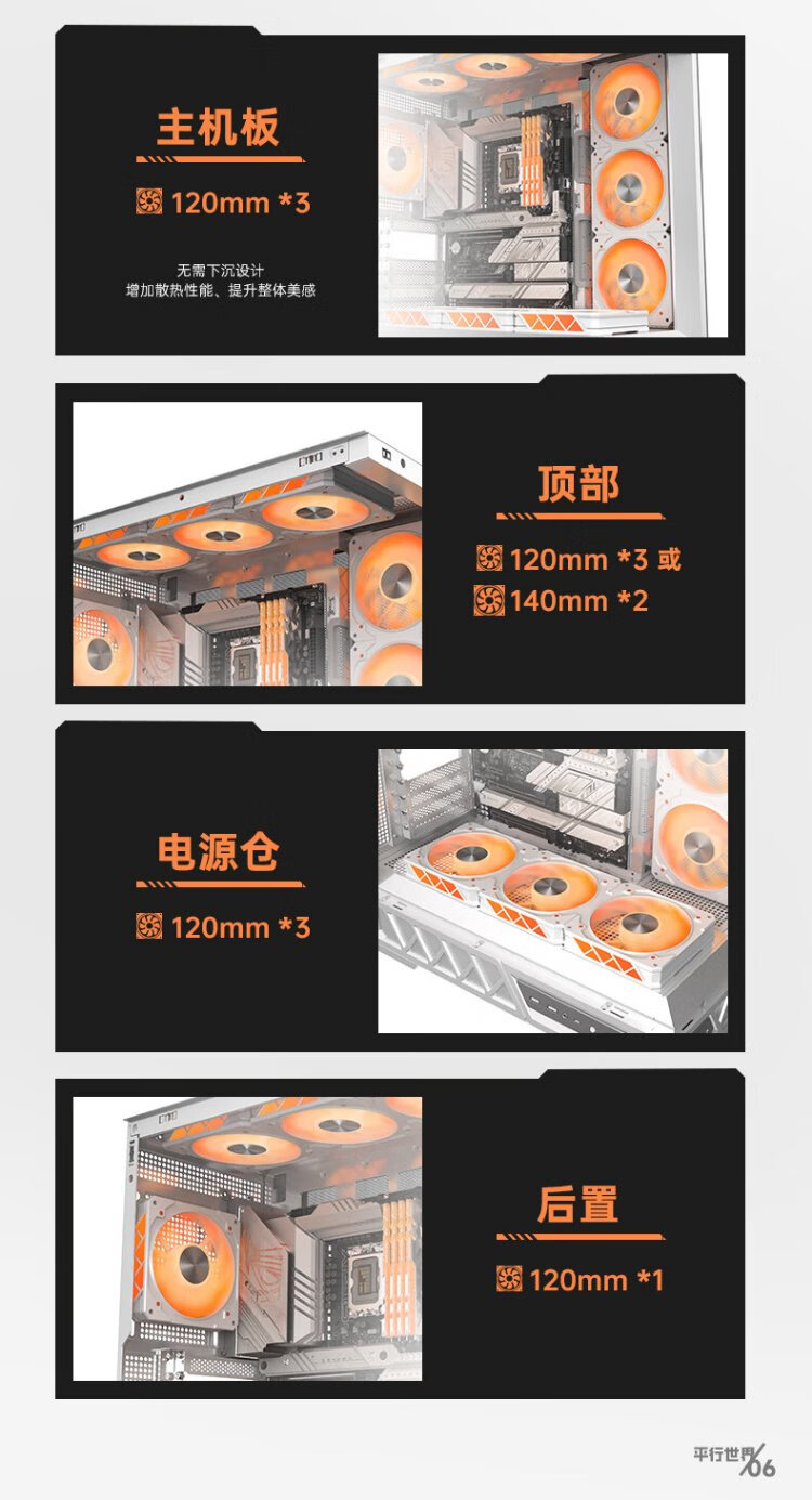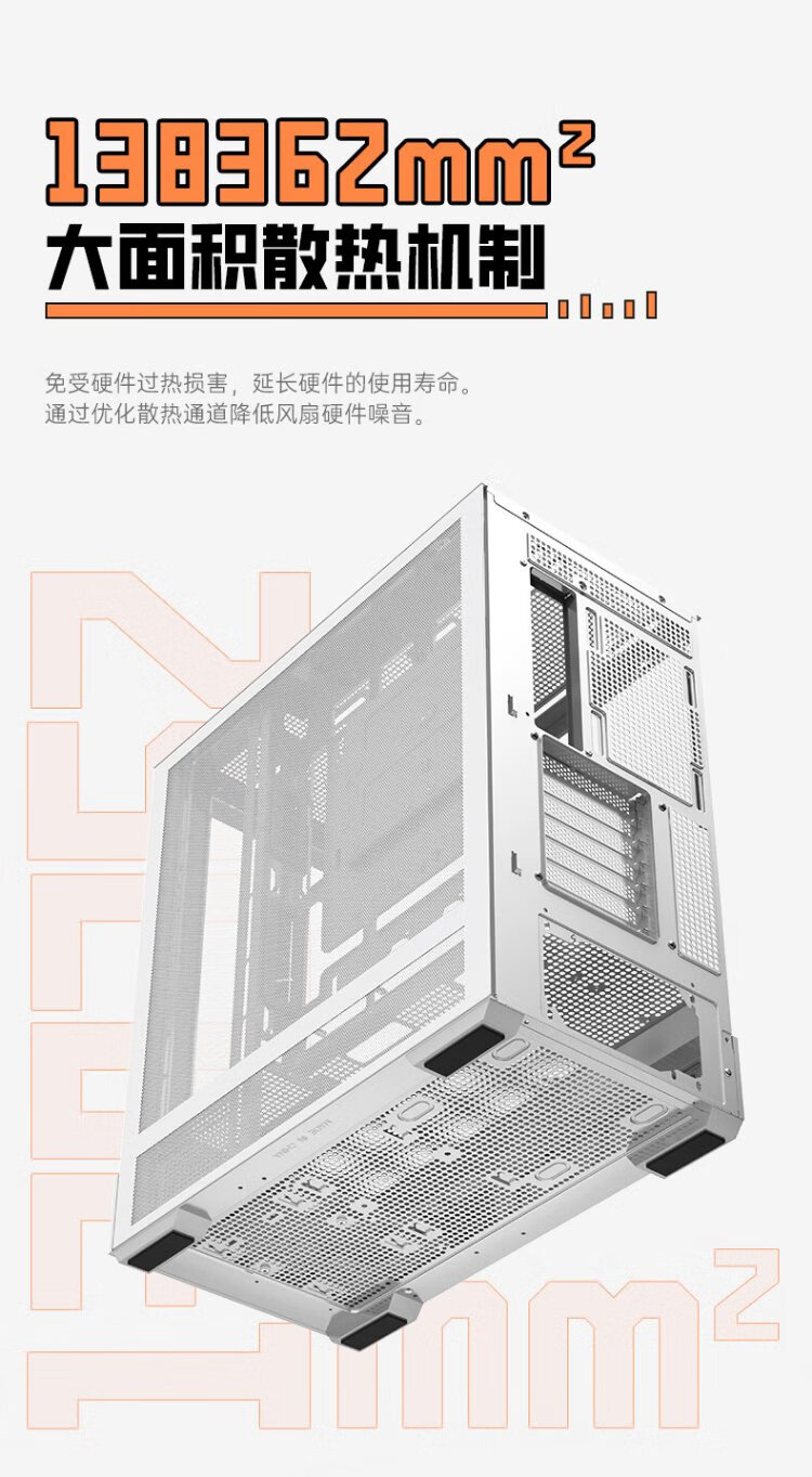 Golden field parallel world white gaming computer desktop host case compatible with dual 360 water-cooled ATX motherboards/three-sided quick release/supports back insertion/270 sea view room