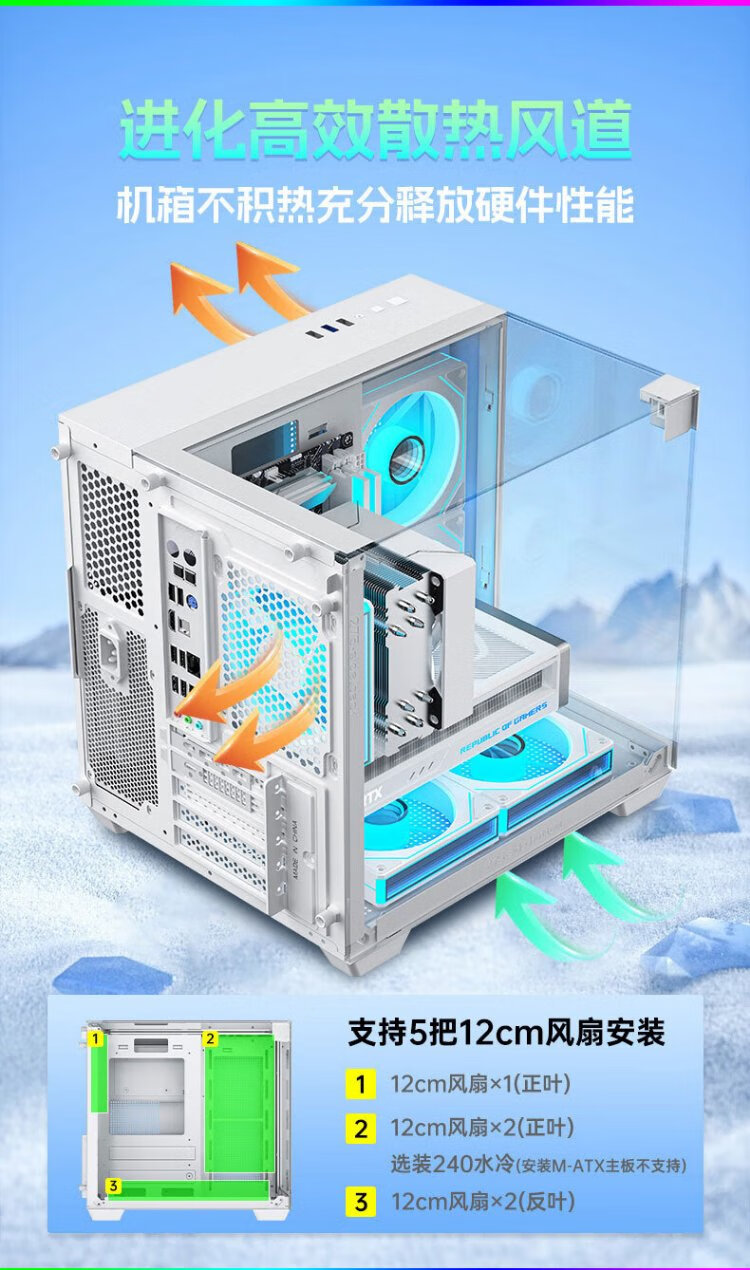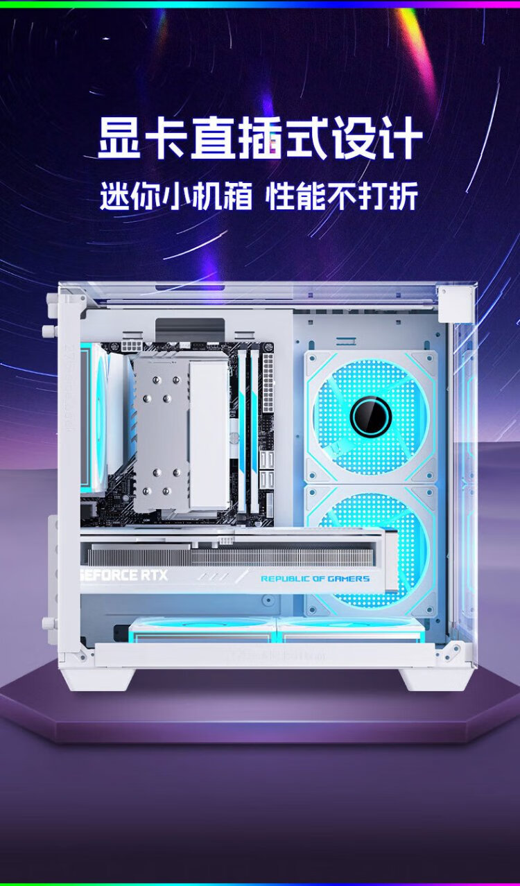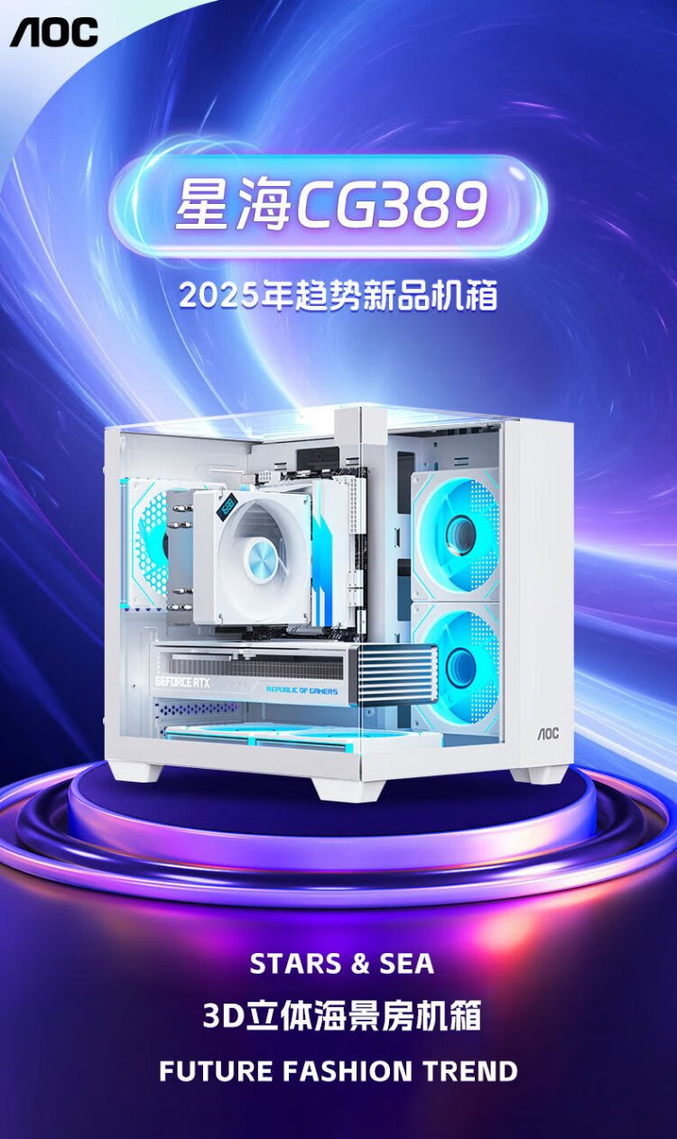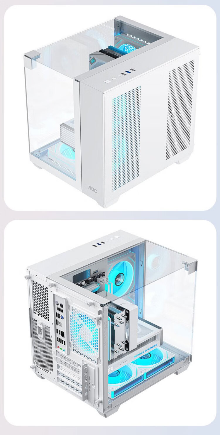 AOC星海CG389白色 游戏电脑主机海景房机箱 三面玻璃/无立柱/支持MATX/5风扇位/3D立体全景/左右分仓