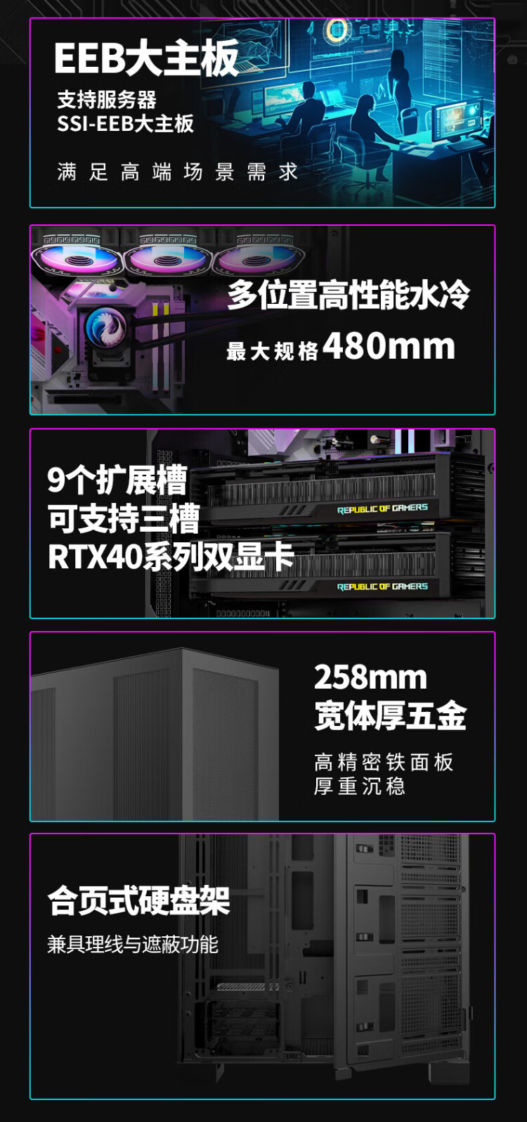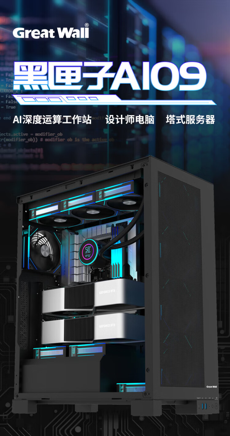 Great Wall Black Box 09 AI chassis (dual 5090/support EEB large motherboard/0.9mm steel plate/nine PCI/8 hard drive slots/15 fan slots/dual 360 water cooling/Type-C)
