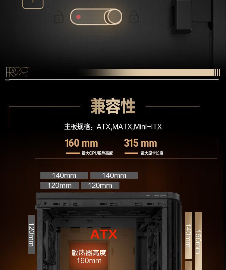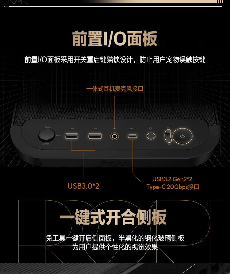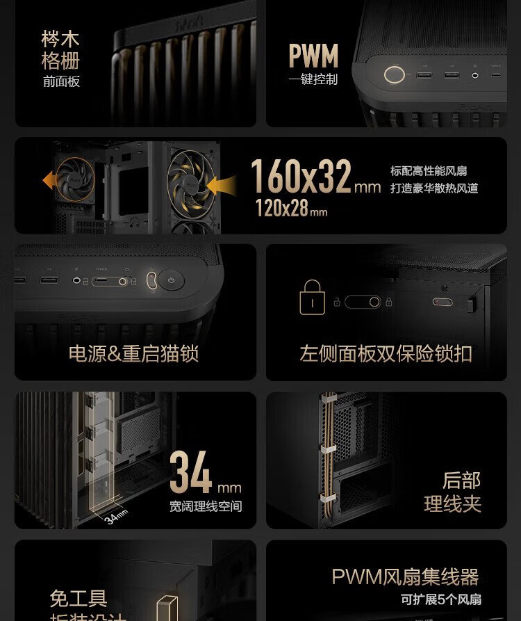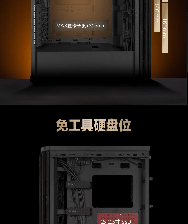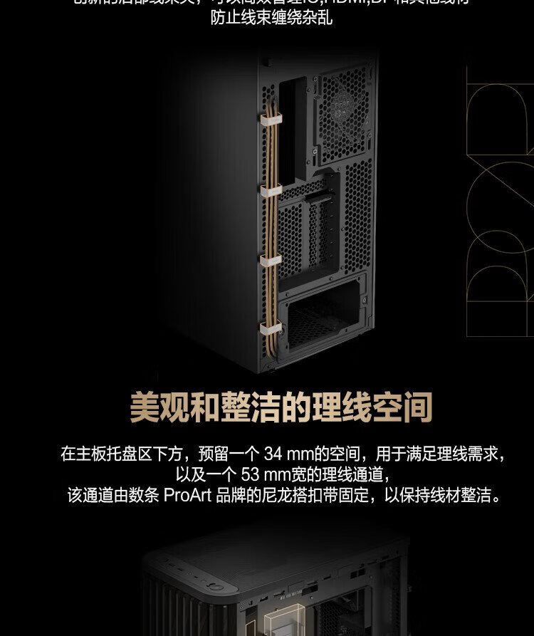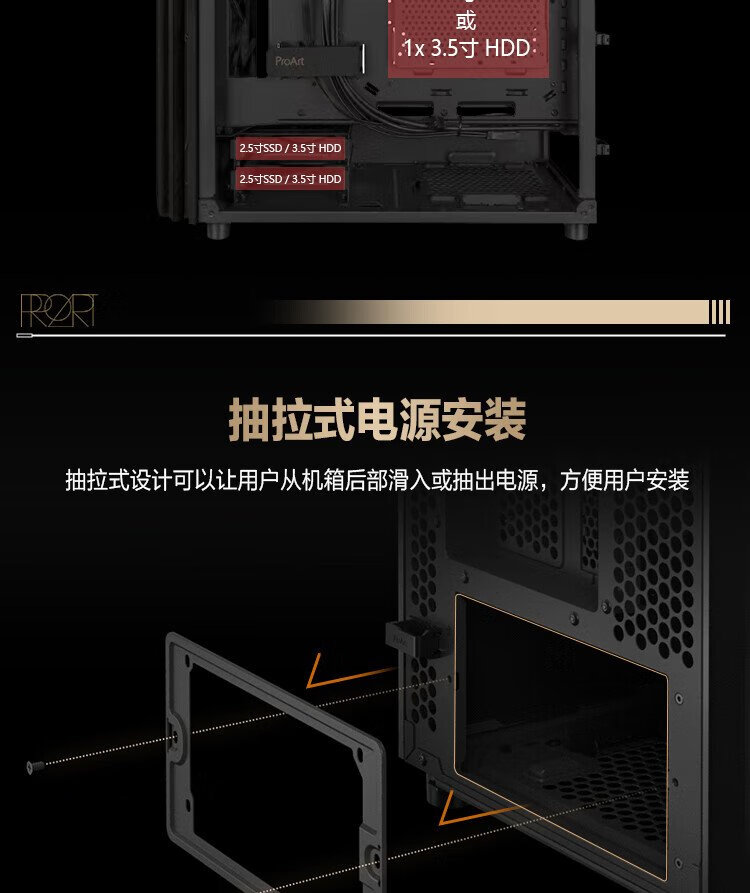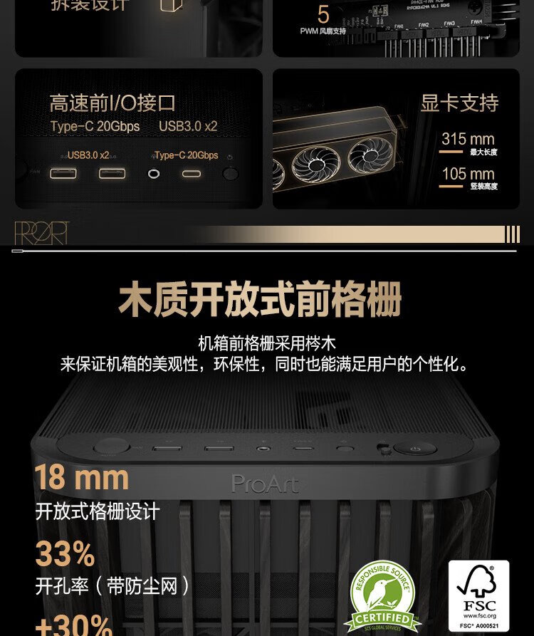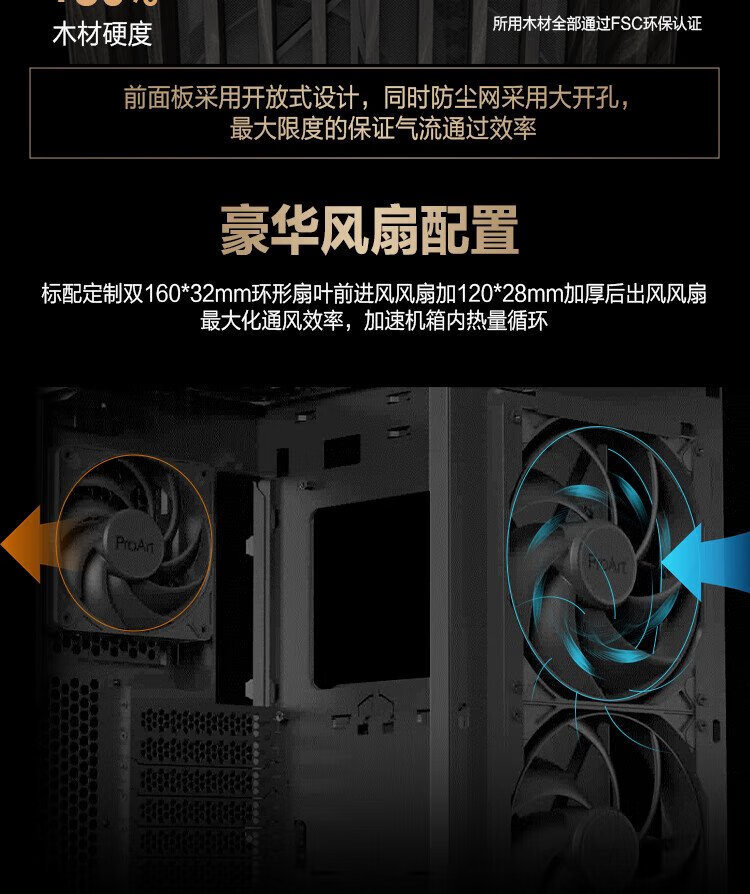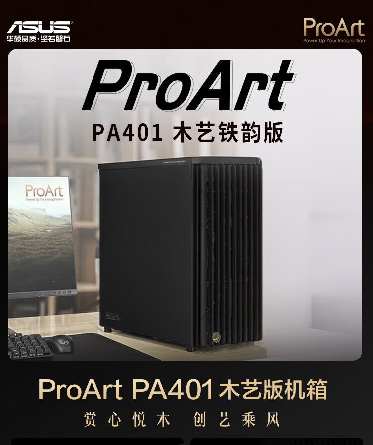 华硕ProArt创艺国度PA401木艺铁韵版机箱 强力散热/木艺前进气格栅/免工具拆装/电源按键锁/PWM开关