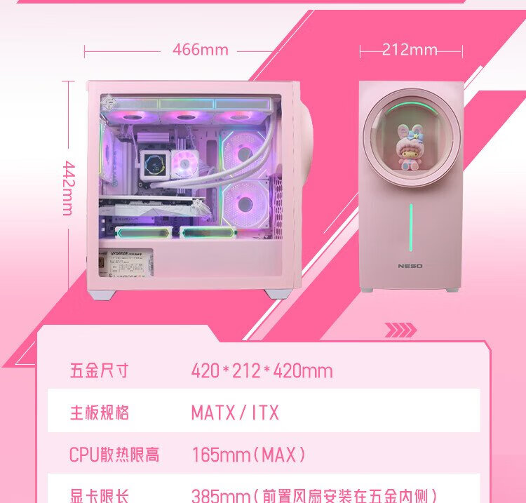 NESO Xingyao Ship 3 Vitality Pink Exclusive Customized Computer Main Case (sub-binary style/exclusive blind box/MATX motherboard slot/ARGB synchronized lighting effect/360 water cooling)