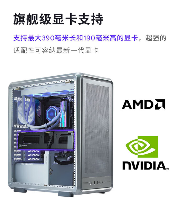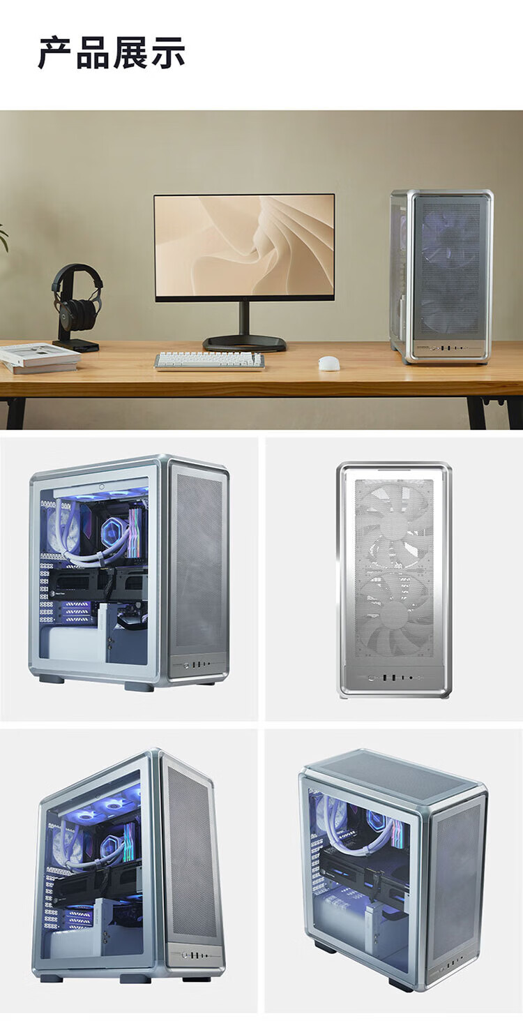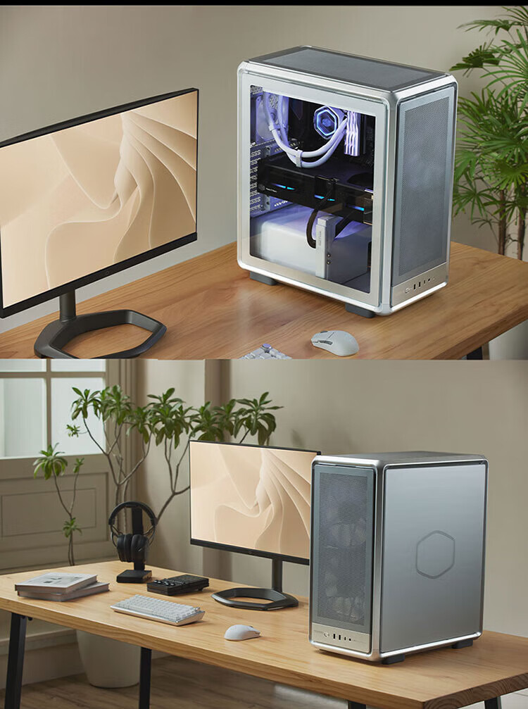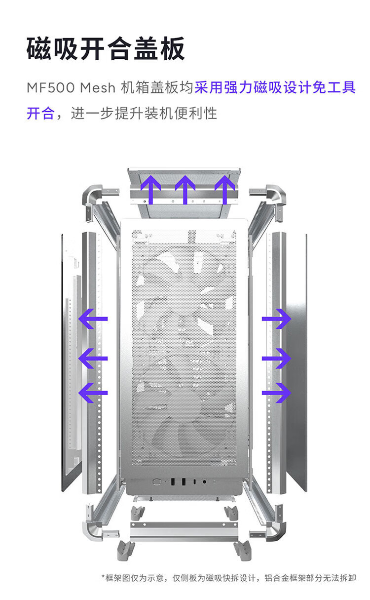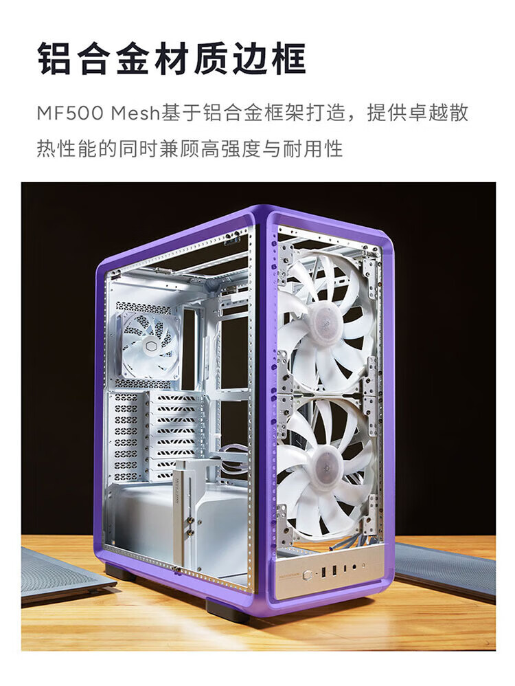 酷冷至尊(CoolerMaster)MF500 Mesh银色 EATX电脑机箱 铝质型材/玻璃侧板/支持CPUGPU双水冷/磁吸盖板/赠独立显卡支架