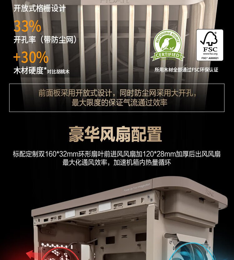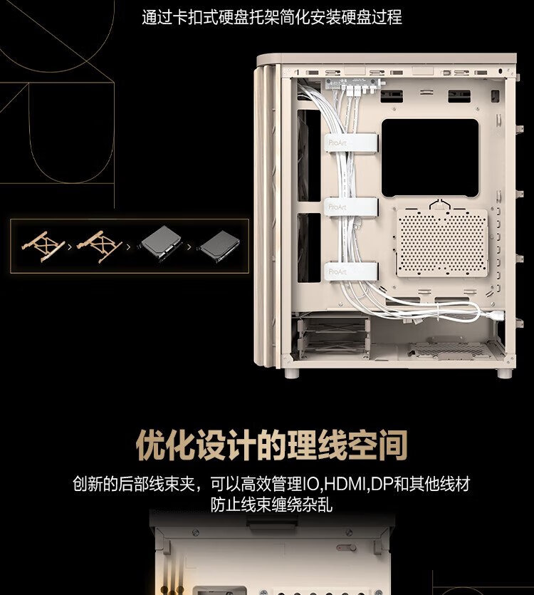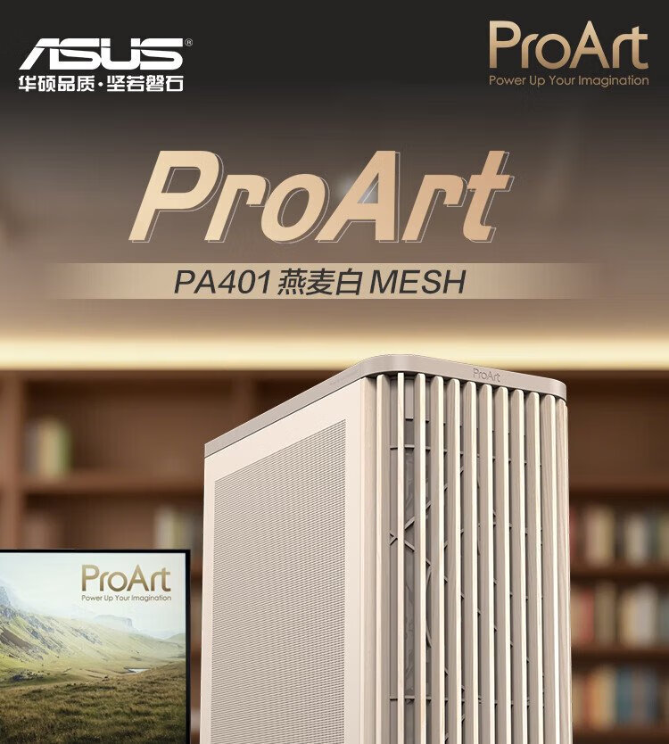ASUS ProArt Creative Country PA401 Oatmeal White MESH Edition Chassis Wood Art Front Air Grille/Tool-Free Disassembly/Power Button Lock
