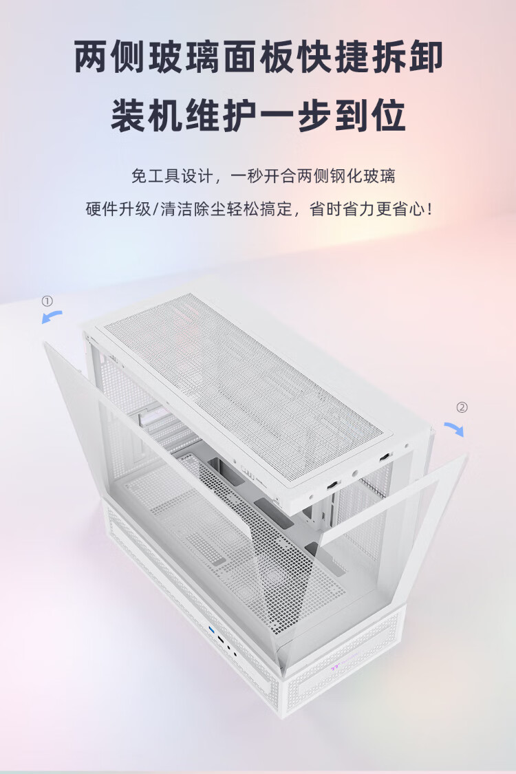 Thermaltake(Tt)钢影透S-M 海景房机箱 电脑主机 白色(M-ATX主板/支持360水冷/9风扇位)