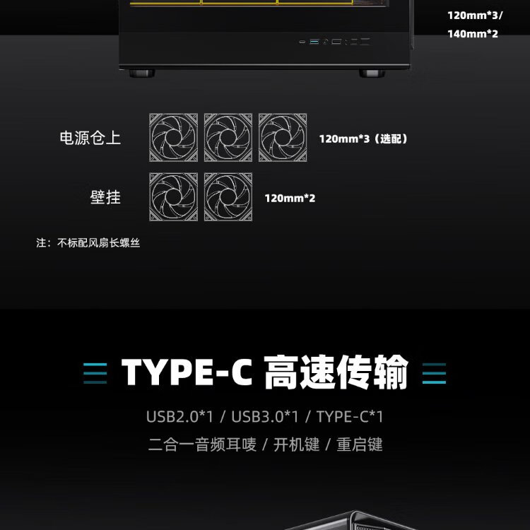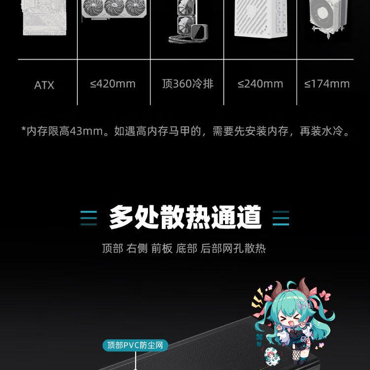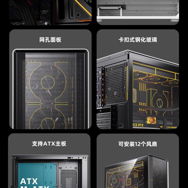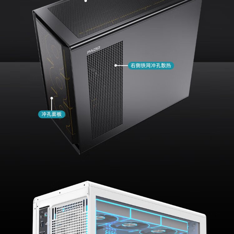 Peninsula Iron Box (PADO) Zhulong L6 Black Glass Side Mesh Desktop Computer Main Case Supports 360 Water Cooling/ATX Motherboard/Air Duct Case/Dust-proof Cooling/12 Fan Positions