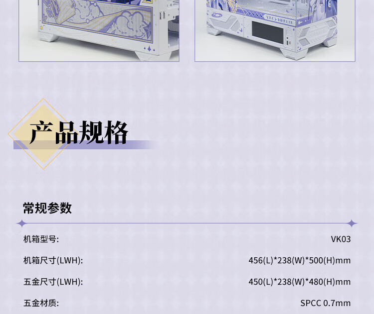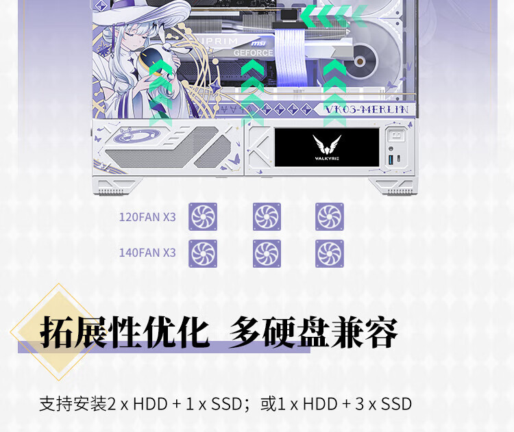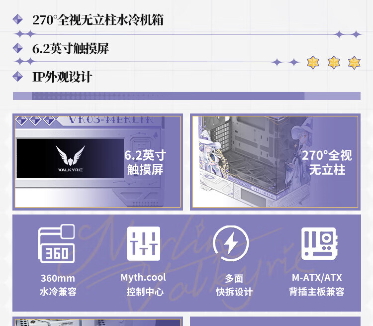 瓦尔基里(VALKYRIE)VK03 MIST ATX 游戏电脑台式机箱 支持360水冷 270°海景房 UV喷绘