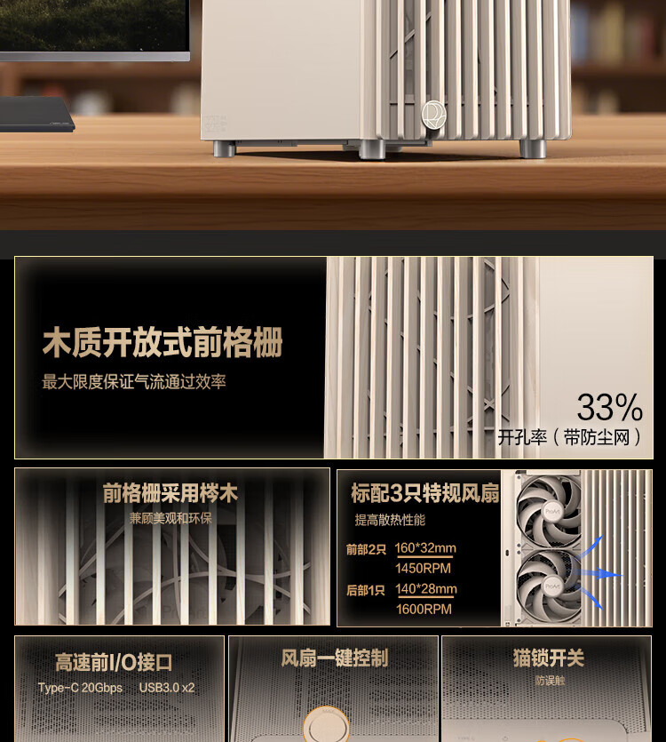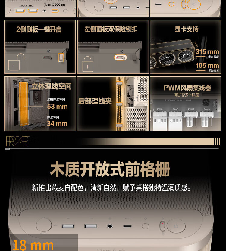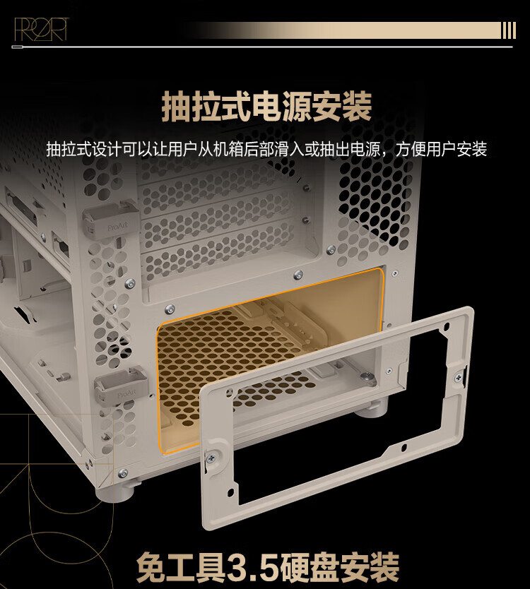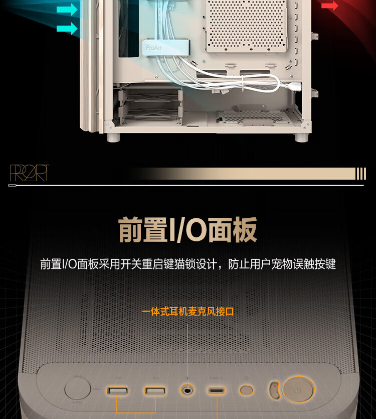 ASUS ProArt PA401 Avena Blanco Madera Art Iron Rhyme Edition Chasis Potente refrigeración/Rejilla de aire frontal Wood Art/Desmontaje sin herramientas/Bloqueo del botón de encendido