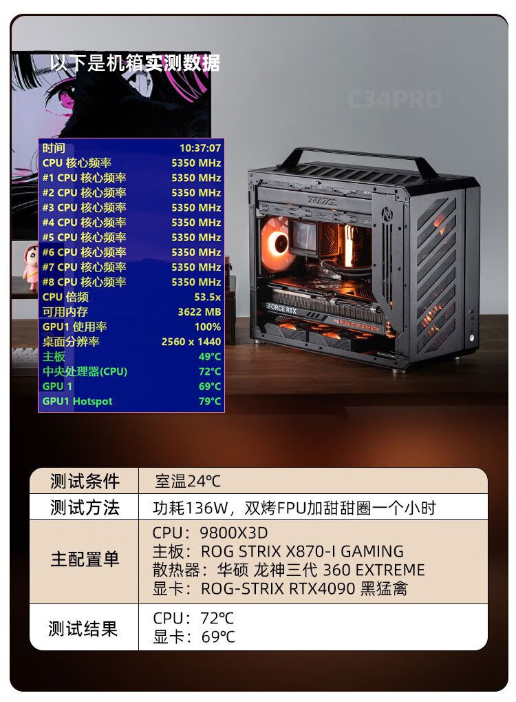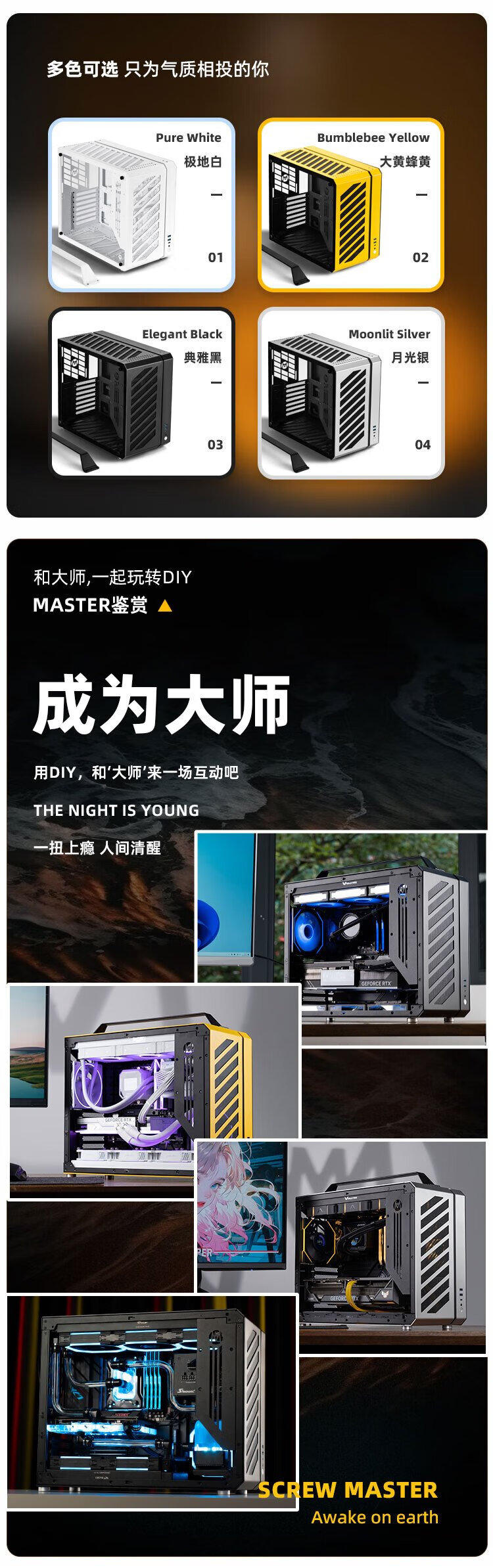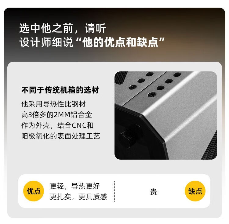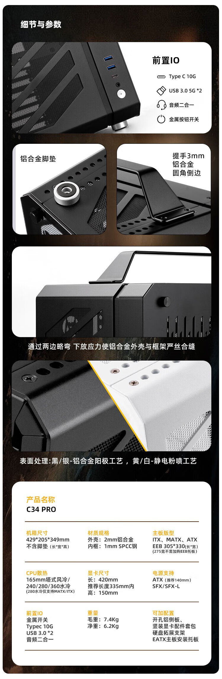 方糖机械大师 酷方C34Pro   小型ATX/EATX主板 支持360水冷 台式侧透 便携桌面方案 铝合金 便携 手提机箱 典雅黑AIR版