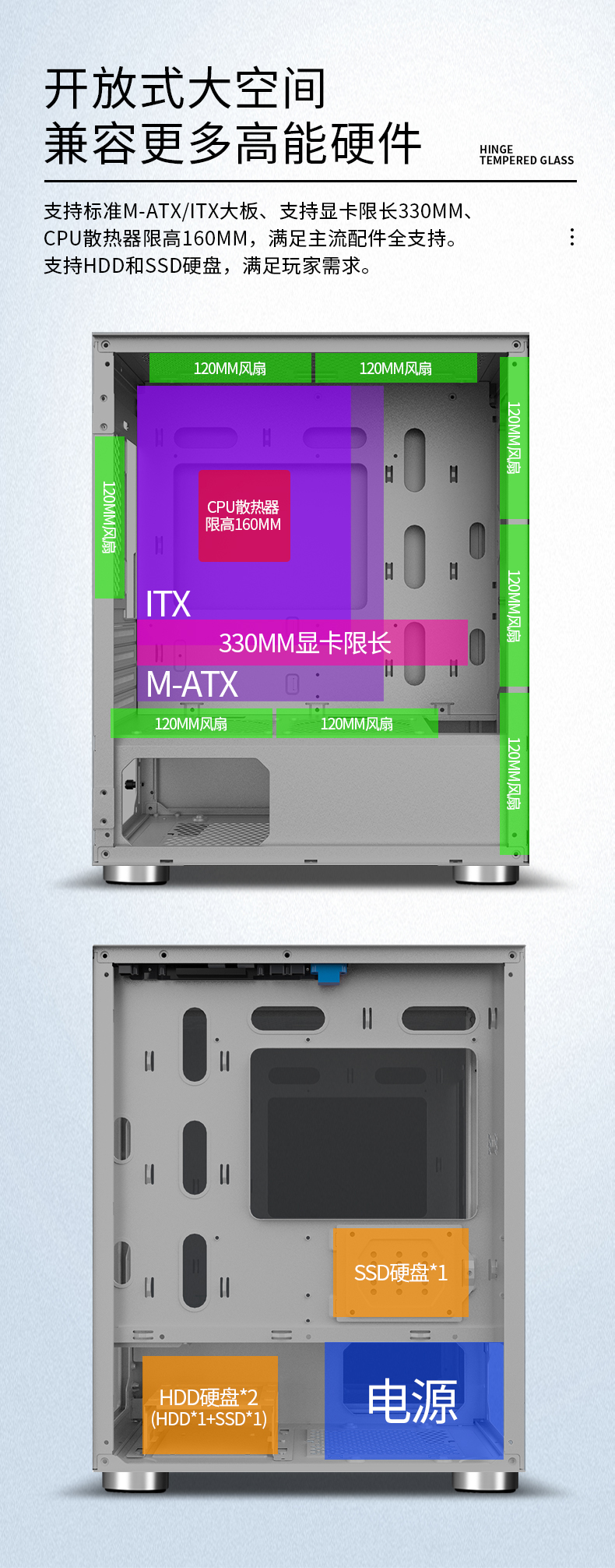 Wanjia Guangyu Boîtier d'ordinateur transparent côté jeu Bureau 240 Châssis principal refroidi à l'eau Châssis M-ATX petit et moyen Carte graphique longue Bureau Châssis mi-tour refroidi par air Guangyu Blanc + 4 ventilateurs Aurora
