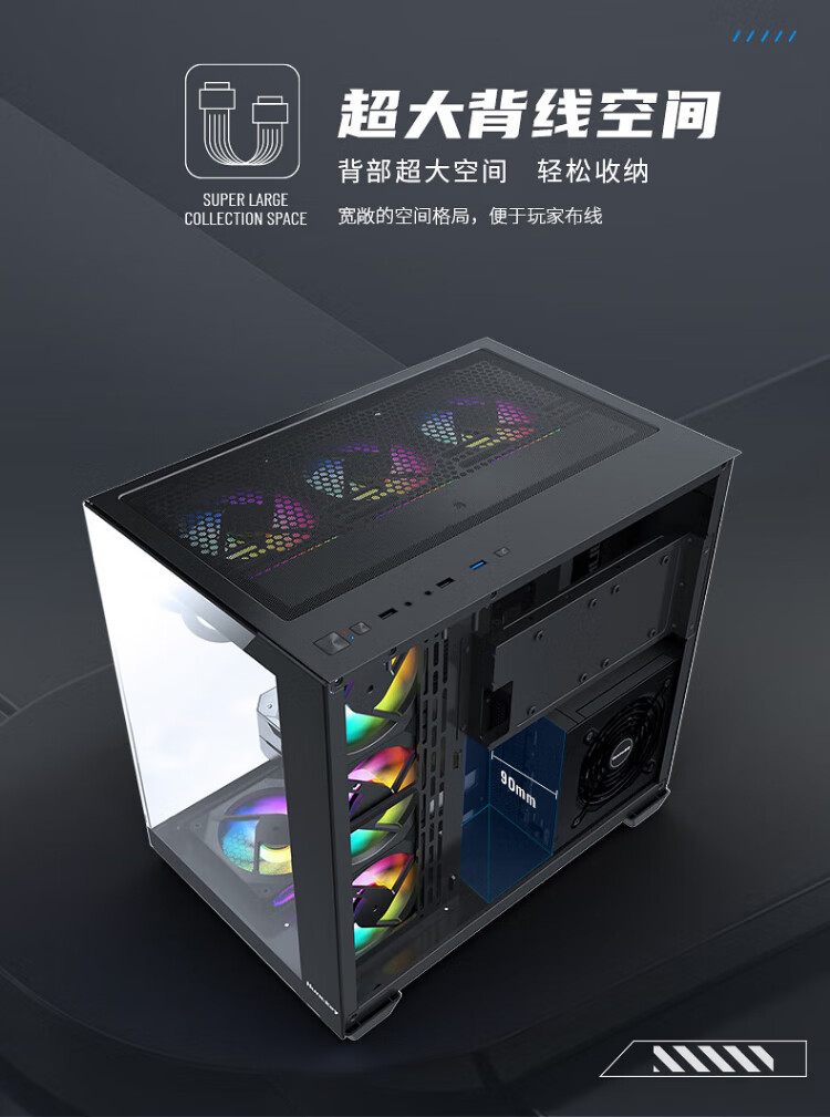 航嘉S960暴风雪X全景版  双面钢化玻璃海景房机箱 台式机电脑主机游戏机箱(支持M-ATX主板/360水冷) S960全景版黑色(支持M-ATX主板) 全景无立柱海景房