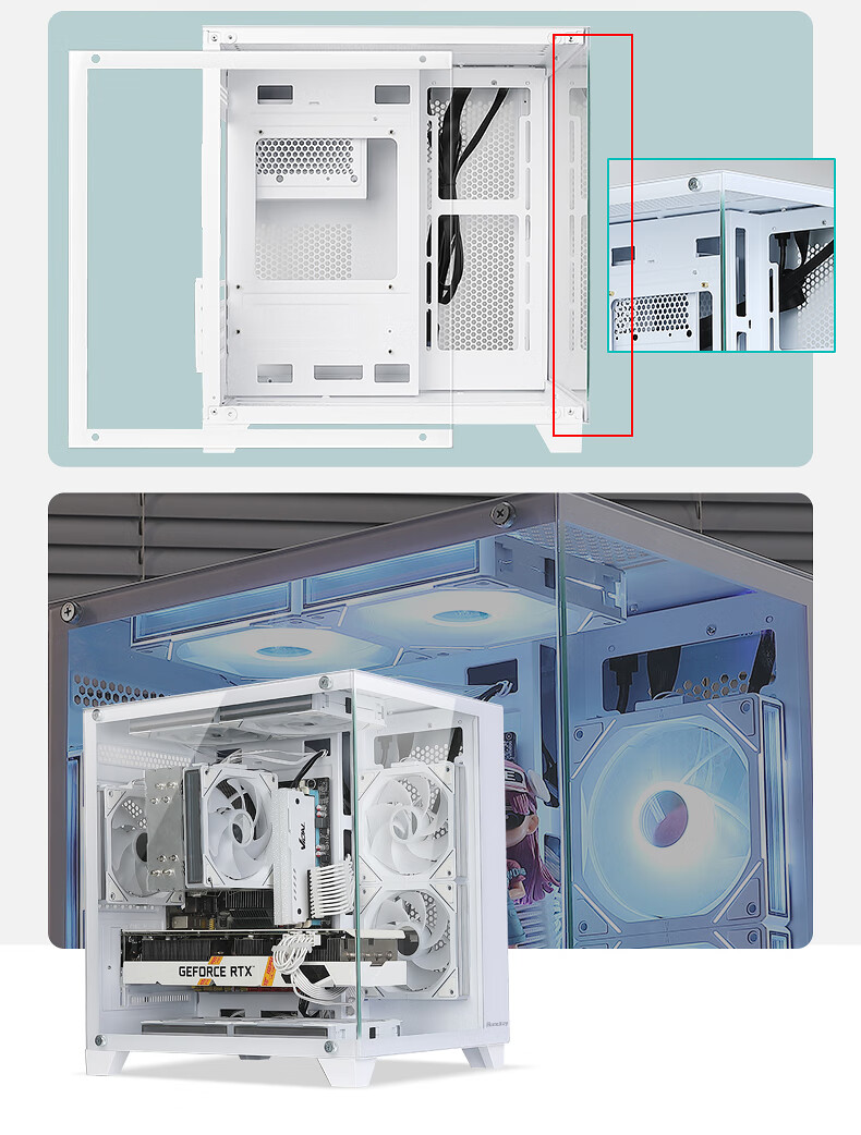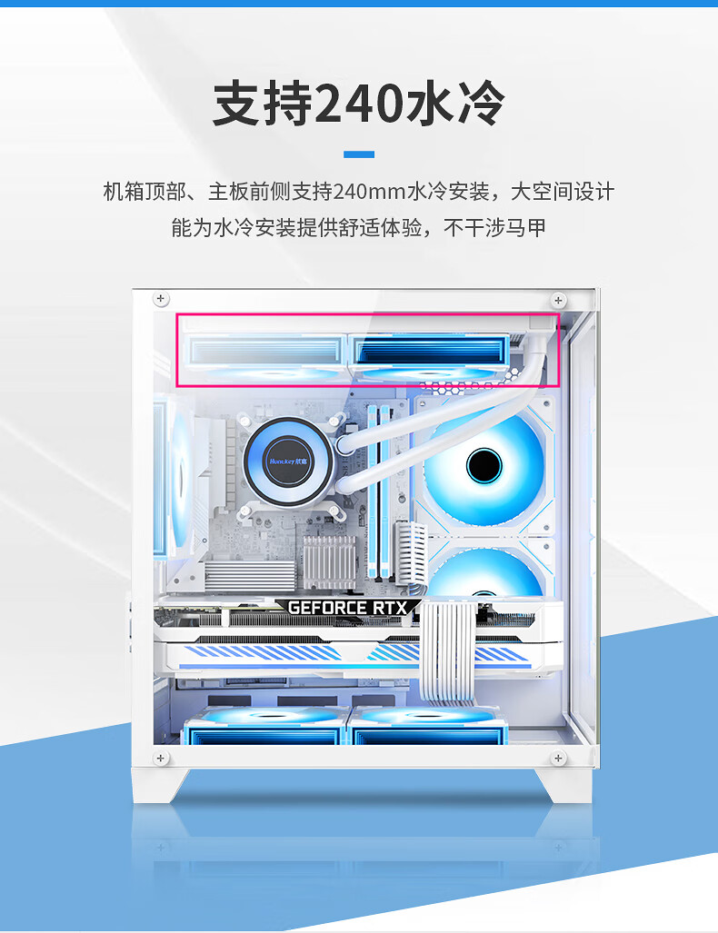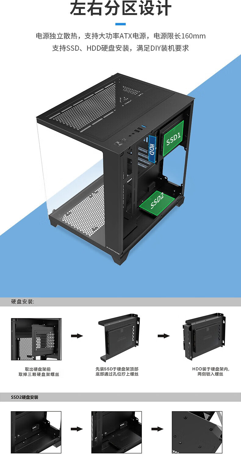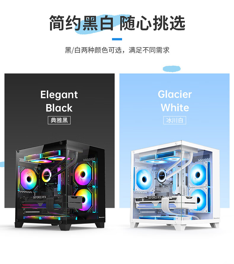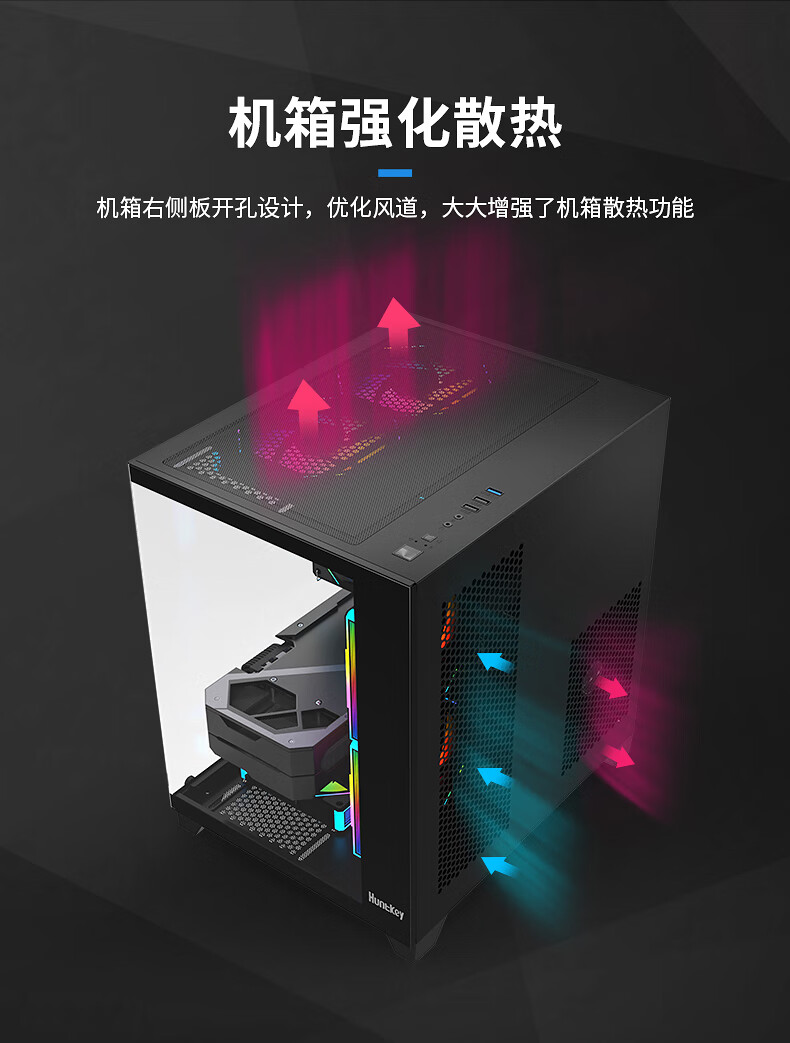 航嘉(Huntkey)S900沙尘暴全景版海景房机箱台式电脑机箱(双面钢化玻璃/左右分区/240水冷/7风扇位/M-ATX主板 ) S900沙尘暴-全视版-白色+5个暮光ARGB风扇