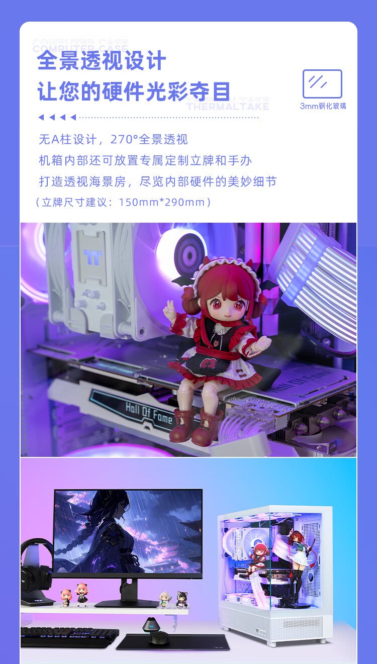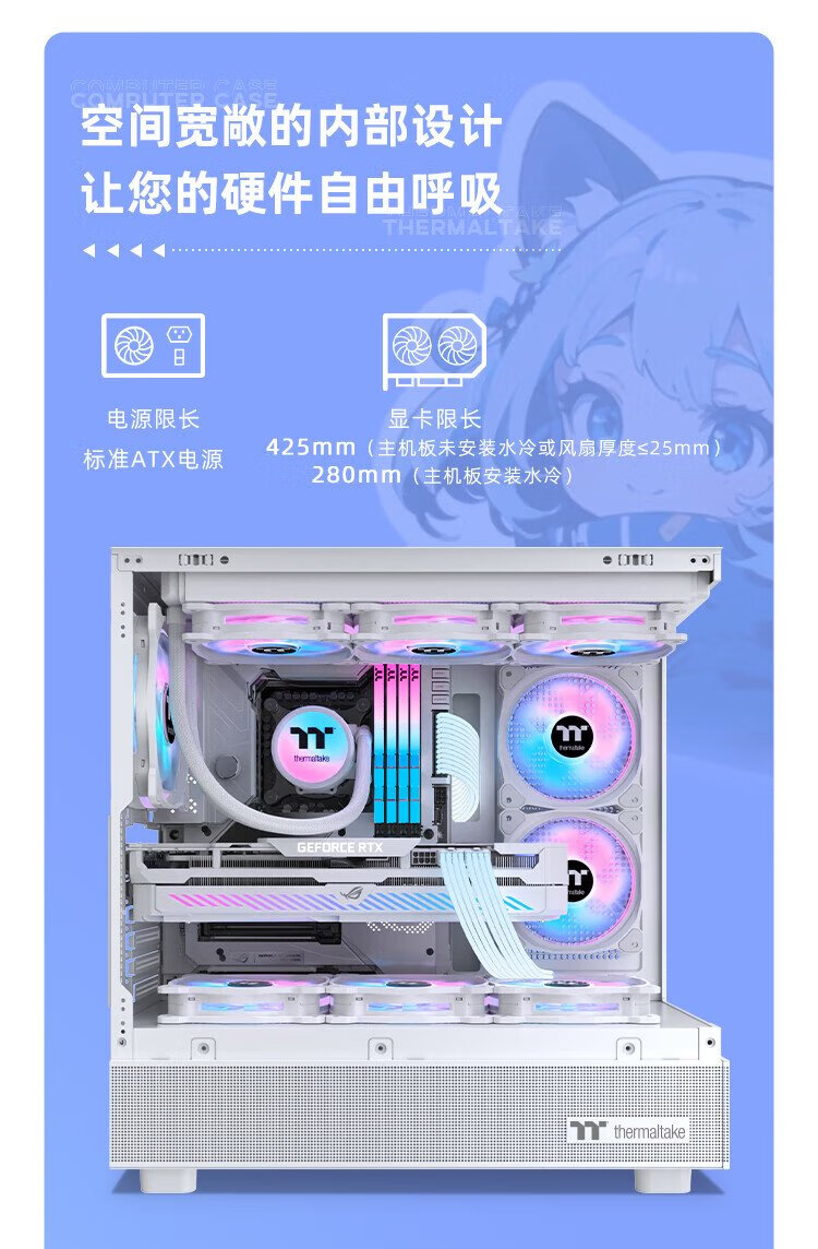 Thermaltake (Tt) Steel Shadow S Seaview Room Chassis Computer Host (ATX-Motherboard/unterstützt 360 Wasserkühlung/270 Panorama/9 Lüfterpositionen/4090 Grafikkarte) Thermaltake S Schwarz