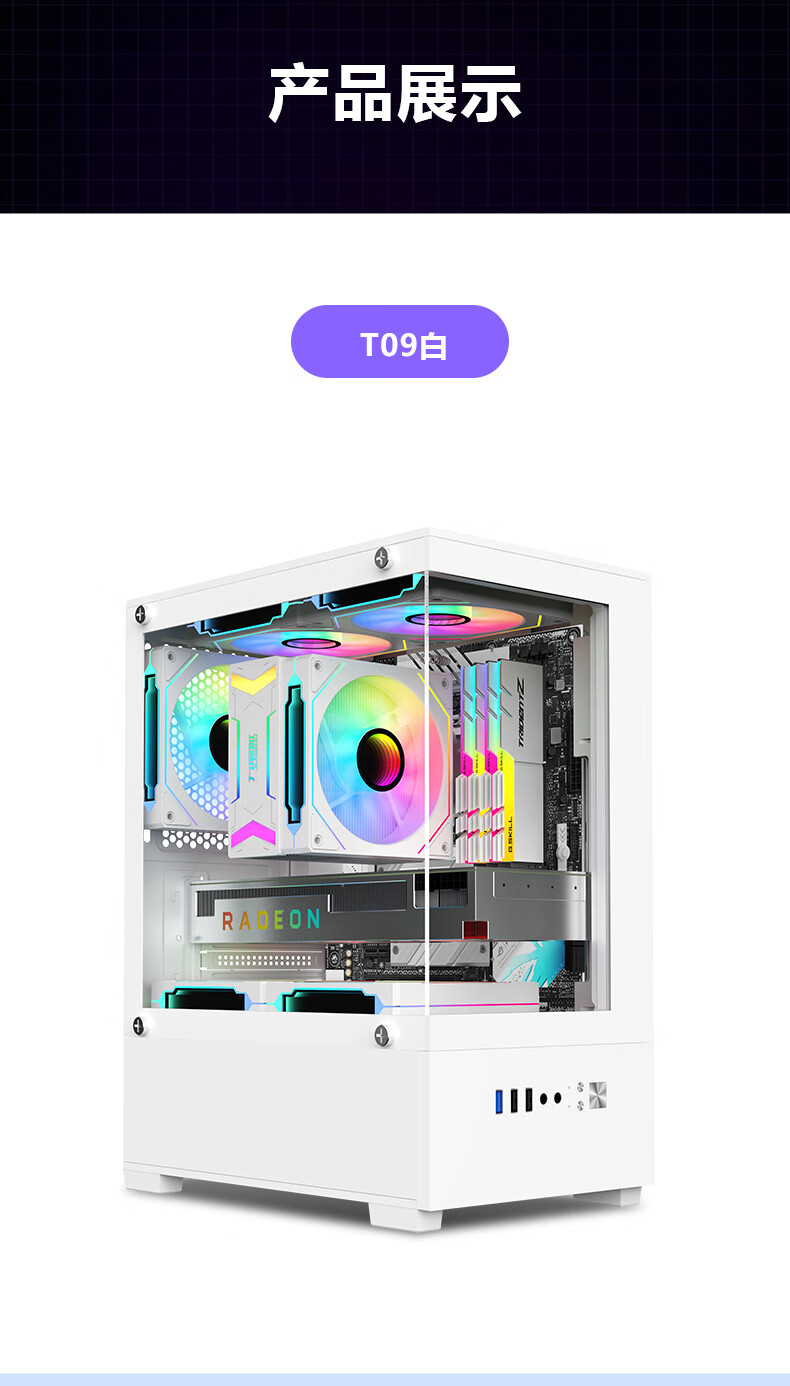 Jiuweihu T09 column-free sea view room MINI computer case desktop double-sided glass side see-through/support MATX motherboard/120 water cooling/5 fan positions/270 sea view room/U3 Jiuweihu T09-single chassis-white