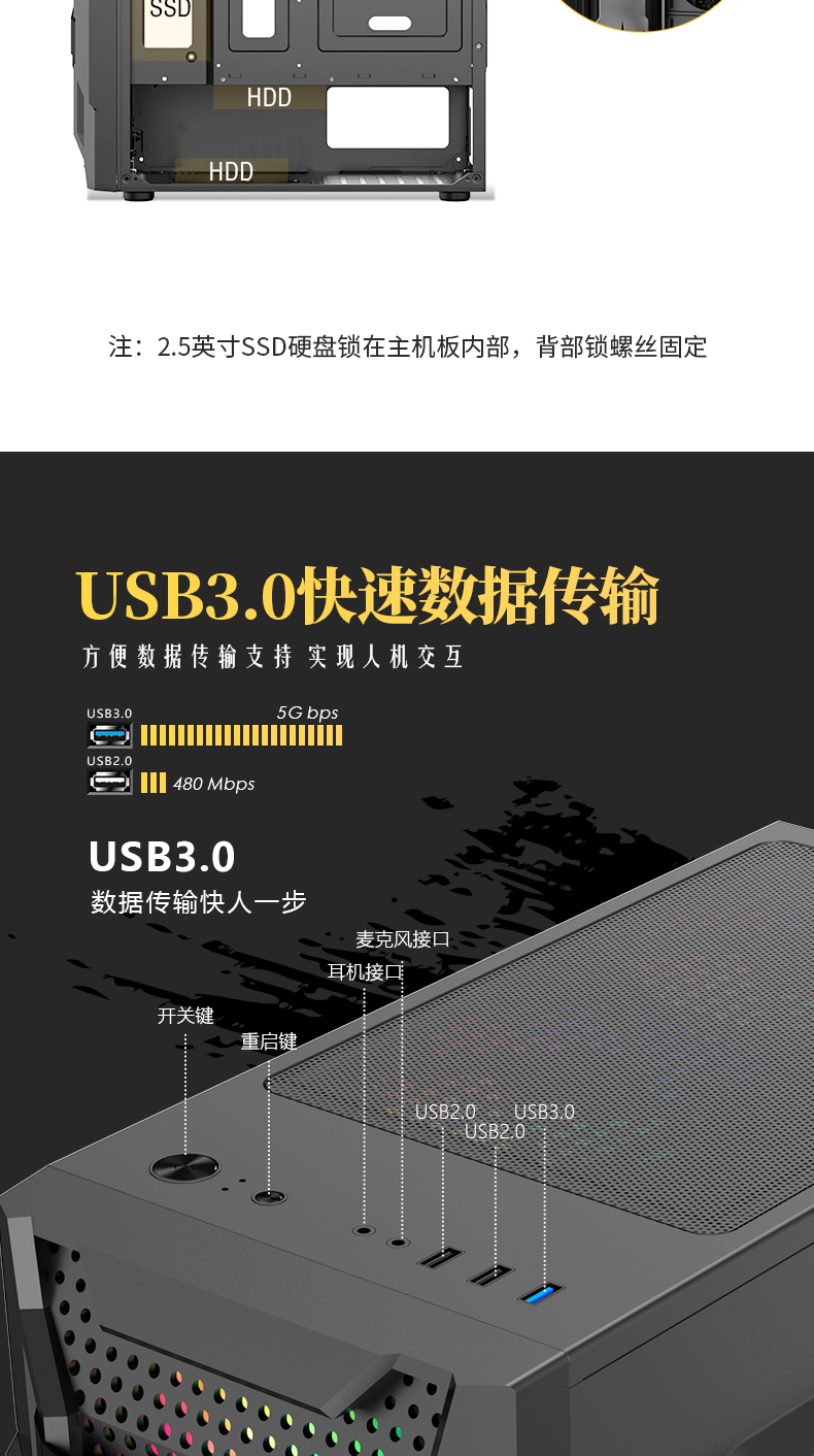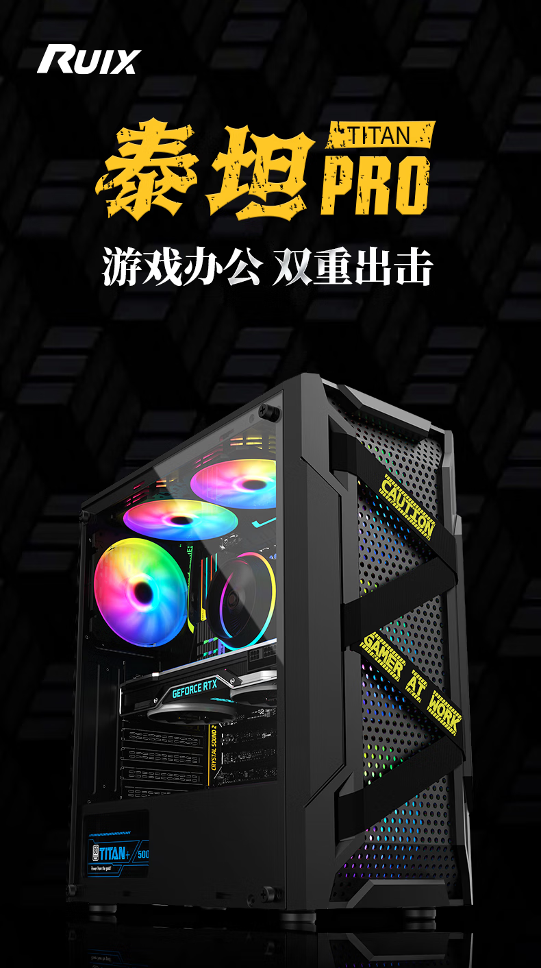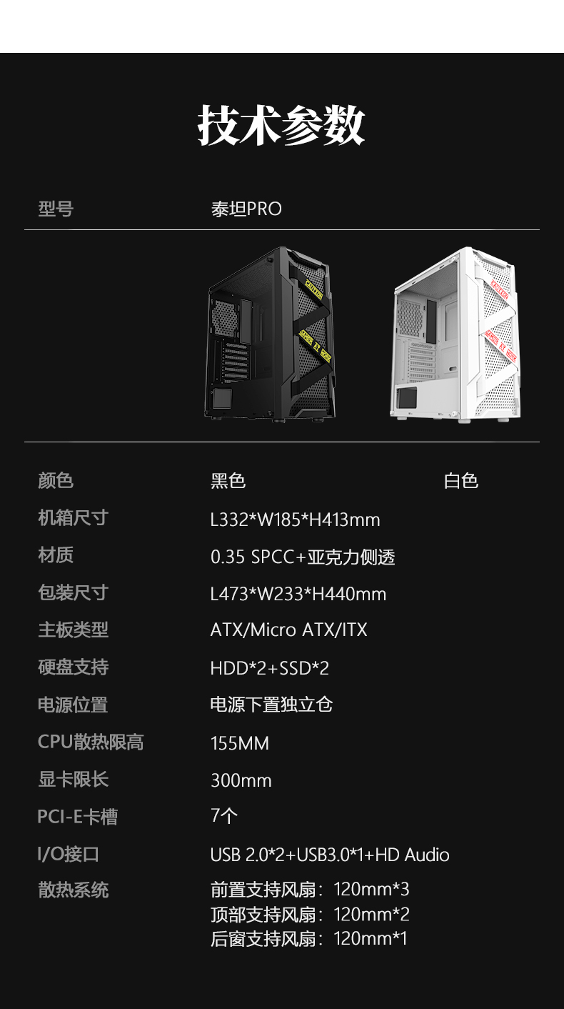 EVESKY Titan PRO computer game case (panoramic luxury side see-through/support ATX motherboard/wide-body gaming computer case/support long graphics card/support backline) Titan PRO-Black