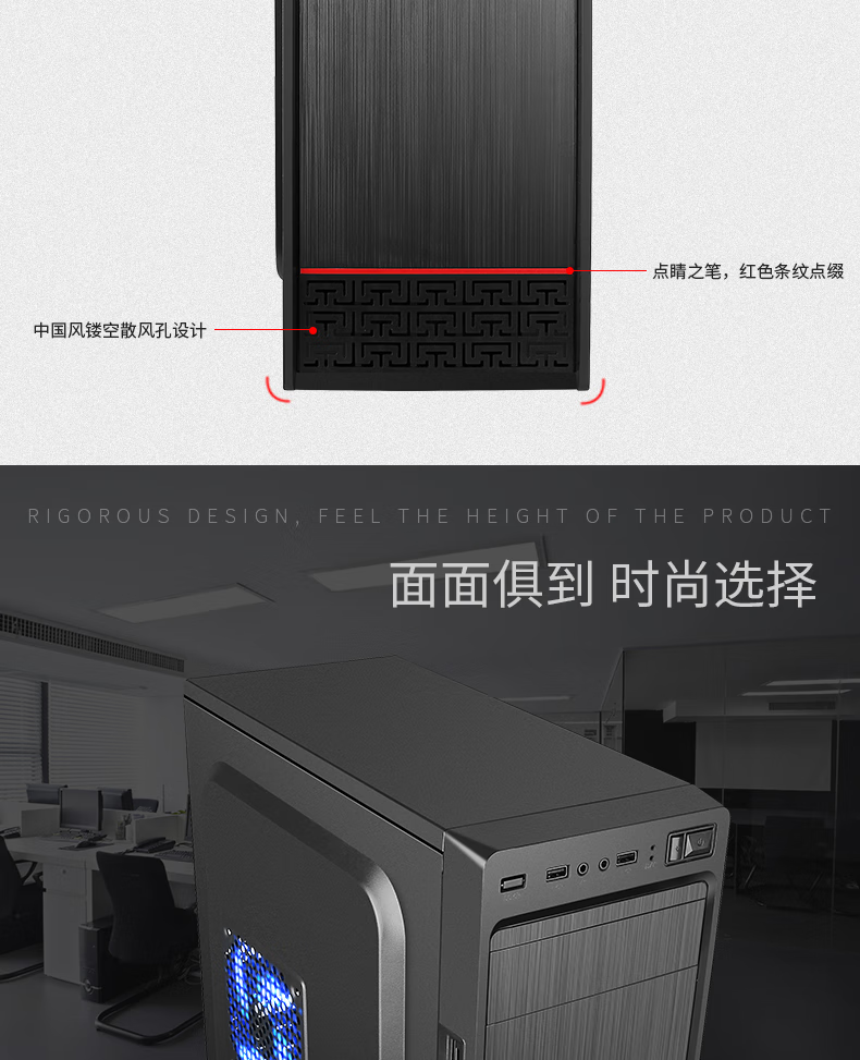 EVESKY N2 black computer case gaming business office computer case/supports ATX motherboard/USB2.0 interface/supports optical drive bay/simple brushed panel N2 case