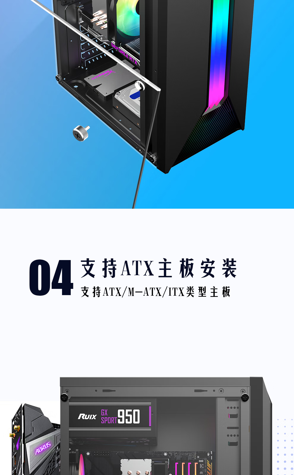 EVESKY Rocket Computer Case Escritorio DIY Lado Completo Transparente RGB Gaming Refrigerado por Agua ATX Tablero Grande Chasis Línea Trasera Interfaz USB3.0 Rocket-Negro Viene con Barra de Luz RGB