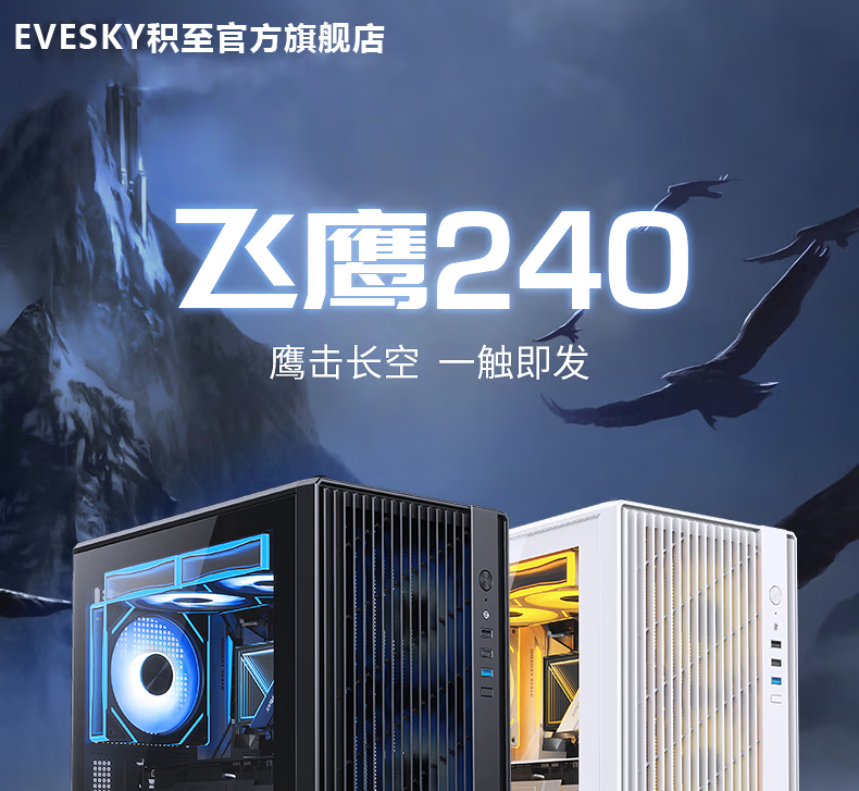 EVESKY积至 飞鹰240电脑机箱台式机matx小机箱玻璃侧透/支持240水冷/背线/USB3.0/独立电源仓/防尘易清洗 飞鹰240黑/MATX主板/240水冷位