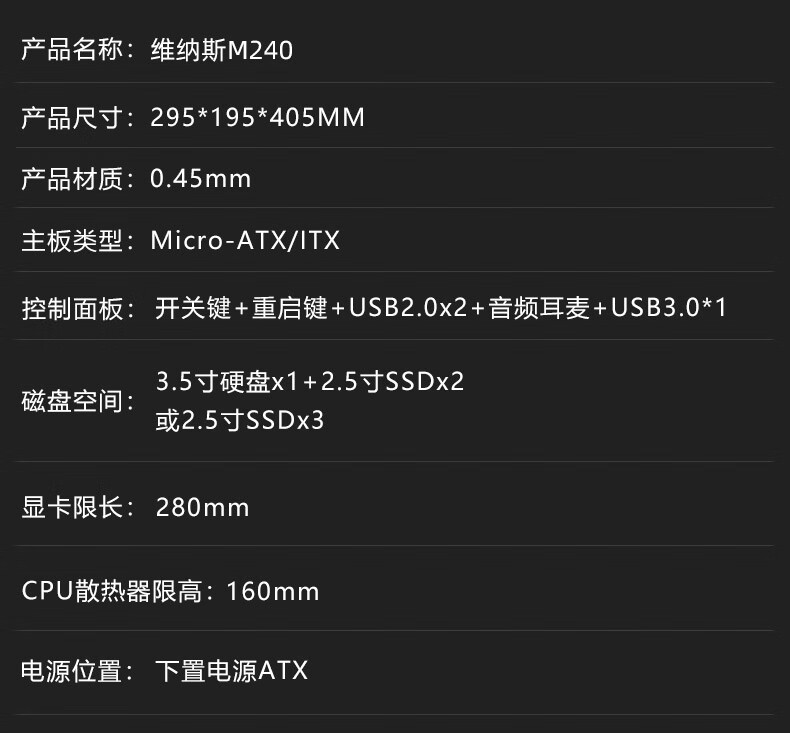 EVESKY Venus M240 Sea View Room Chassis Game Computer Main Chassis Computer Chassis Supports M-ATX motherboard/240 water cooling/270 sea view room/4090 graphics card Venus Panorama Room M240-Black