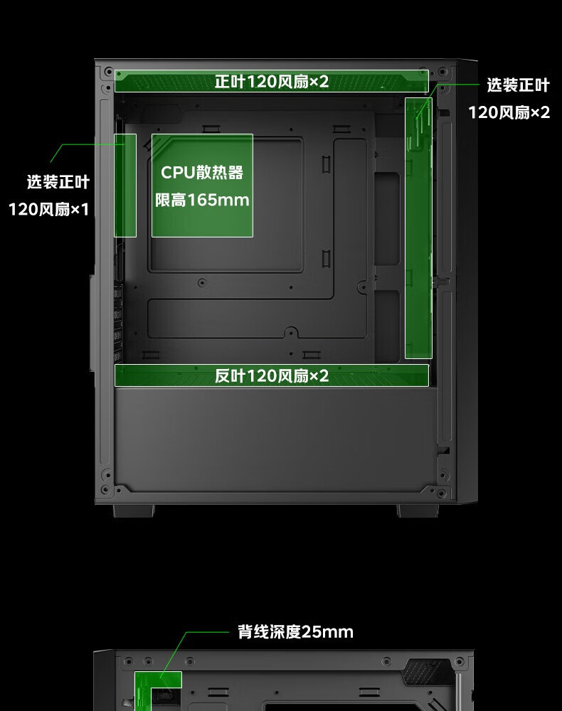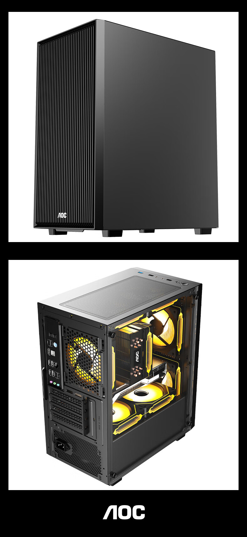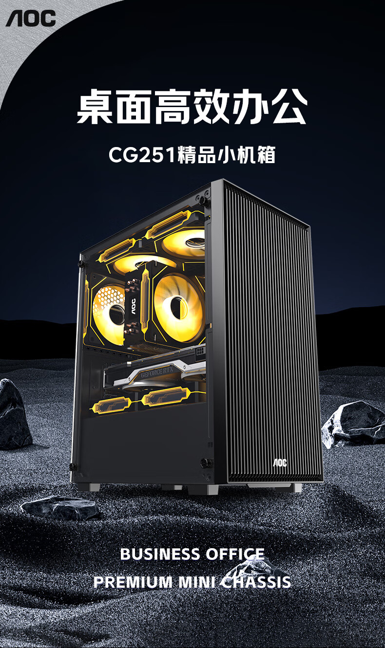 AOC机箱CG251黑色台式电脑游戏办公防尘静音主机箱侧透玻璃支持matx itx主板/7风扇位/磁吸防尘网快拆 CG251B黑色【支持matx itx主板】