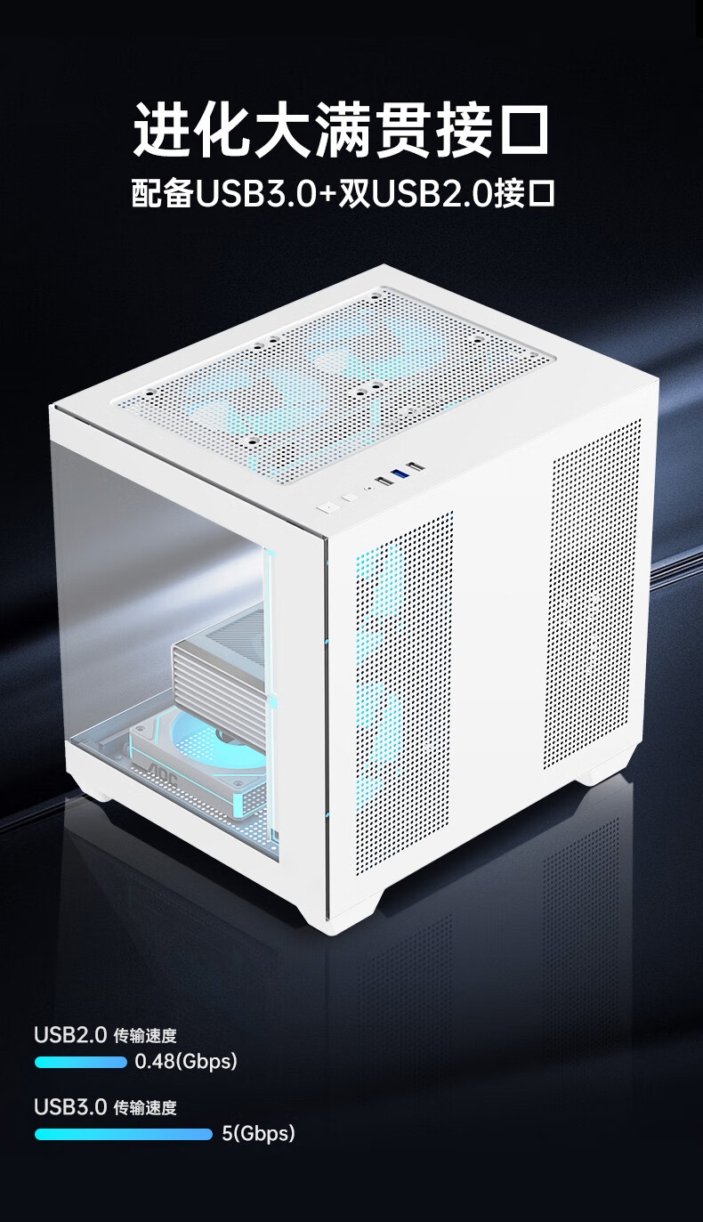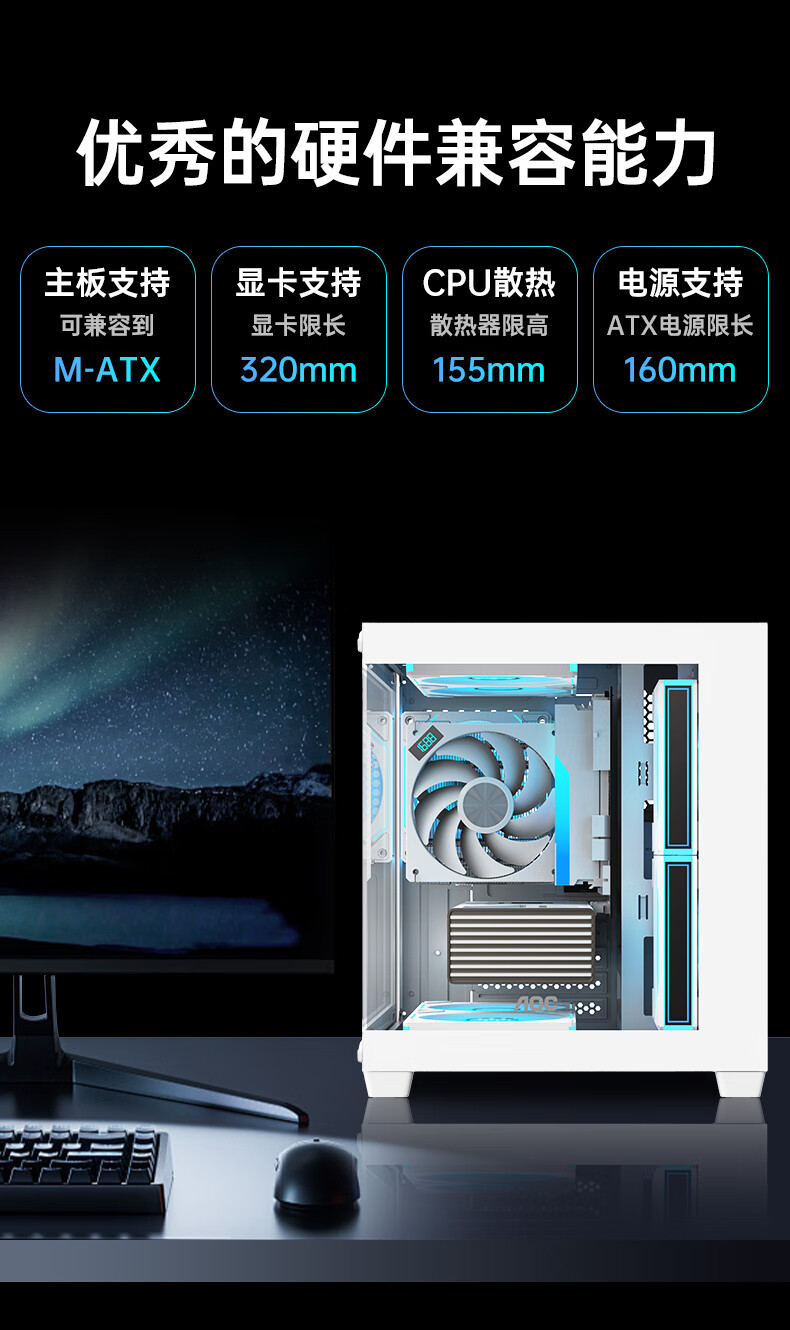 AOC CG381W sea view room case matx column-free panoramic side view ITX computer main case high-value DIY desktop game e-sports water-cooled white main case small CG381W white M-ATX double-sided panoramic side view