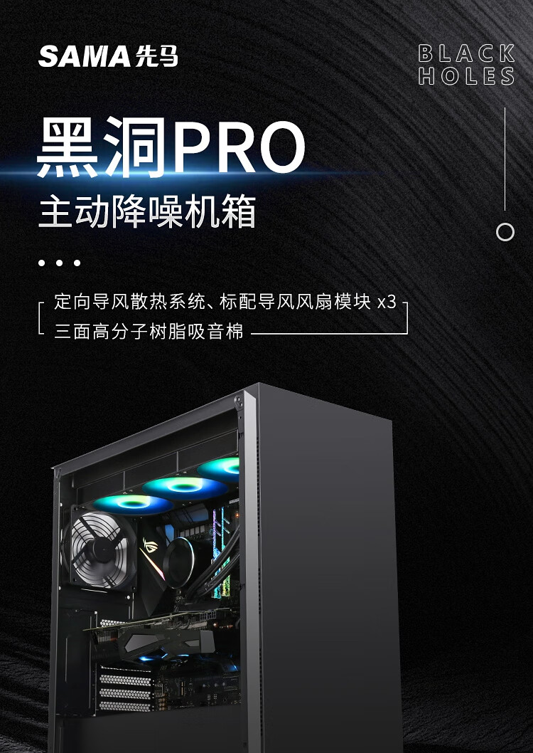 SAMA Black Hole PRO Корпус для настольного компьютера Бесшумное шумоподавление Большой корпус ATX/MATX 360° Основной корпус настольного компьютера с водяным охлаждением и воздушным охлаждением/стандартное оснащение 3 бесшумными вентиляторами Black Hole PRO (стандартное оснащение 3 бесшумными вентиляторами)