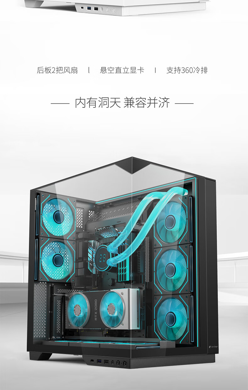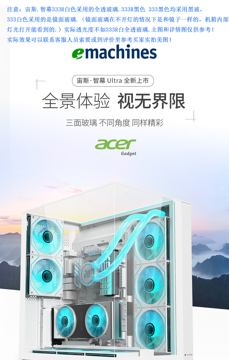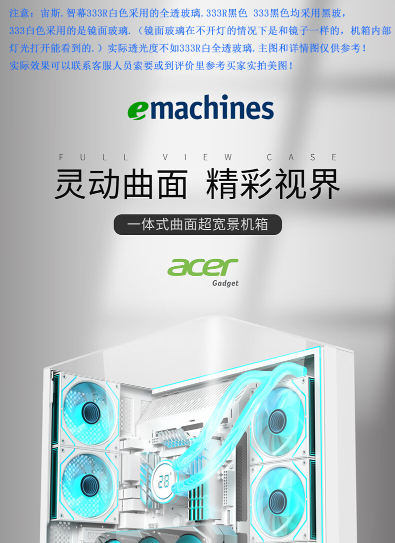 EMACHINES Acer acer Zeus smart screen UItra+ boîtier d'ordinateur verre à trois faces verre incurvé intégré vue sur la mer chambre 360 ​​refroidissement par eau/Type-C/prise arrière de la carte mère/carte graphique installation verticale Zeus smart screen UItra+V333R noir (verre incurvé)