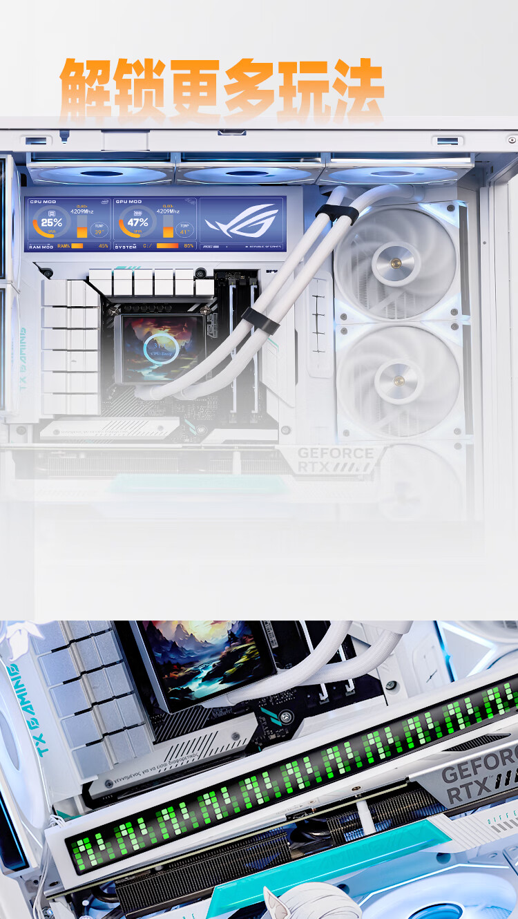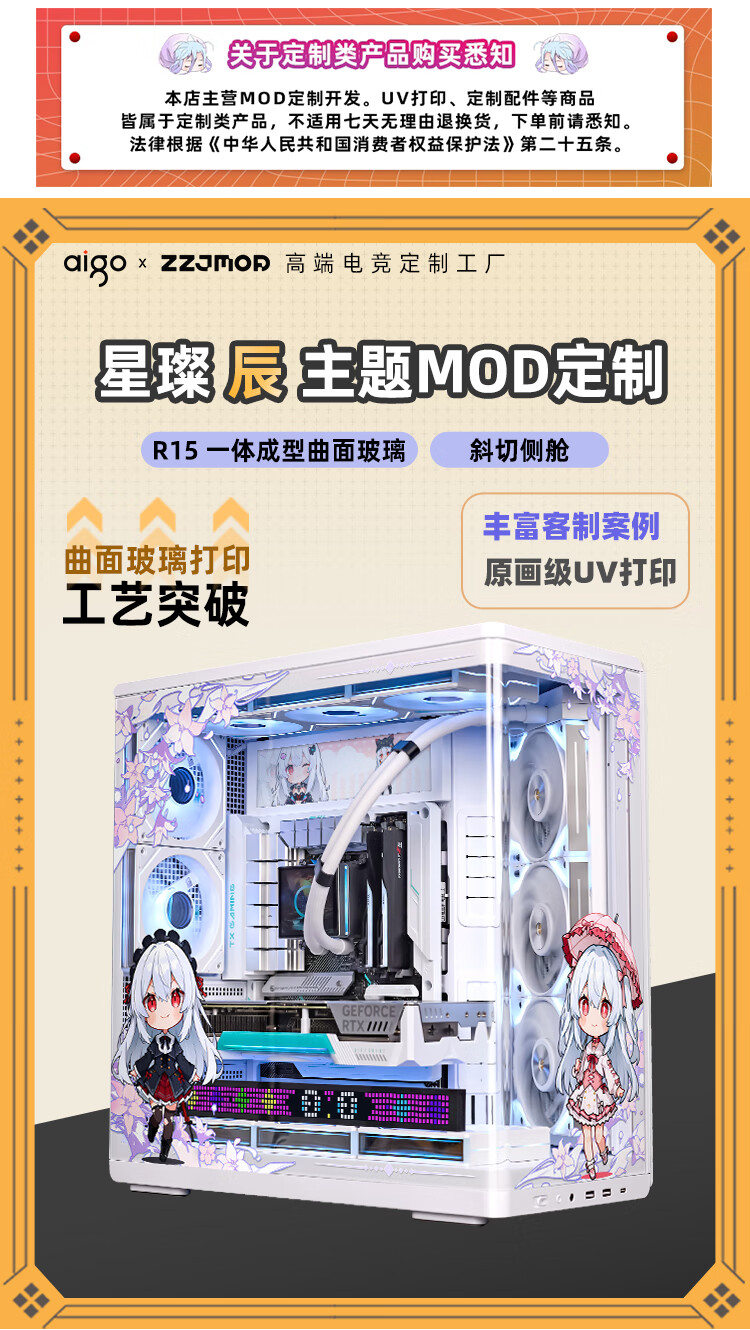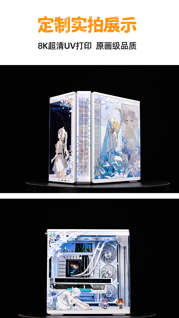 爱国者(aigo)星璨辰动漫主题定制机箱曲面玻璃海景房副屏屏显游戏电竞台式电脑主机箱EATX左右分仓双360 HD9.2寸高清屏【白色】