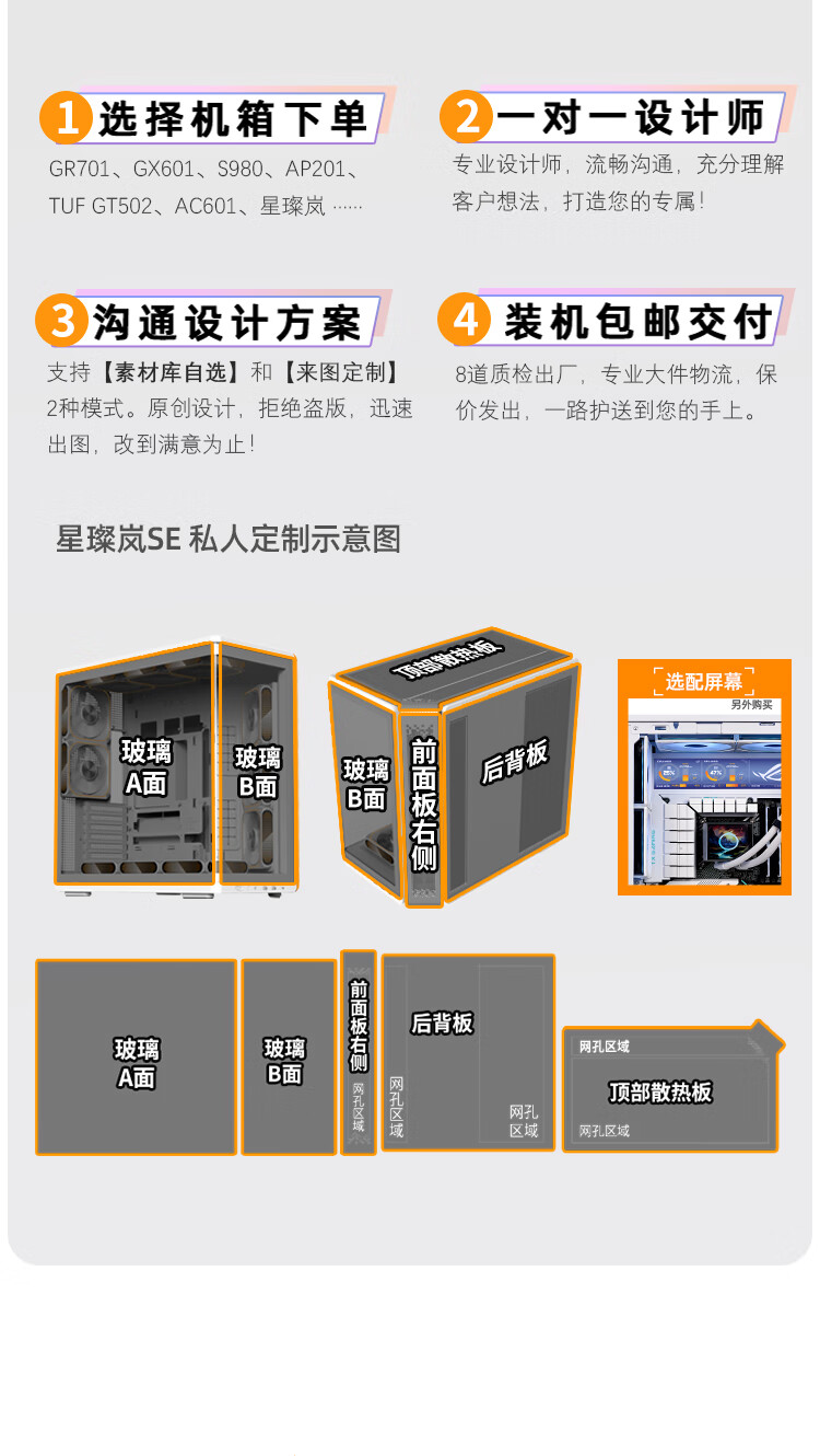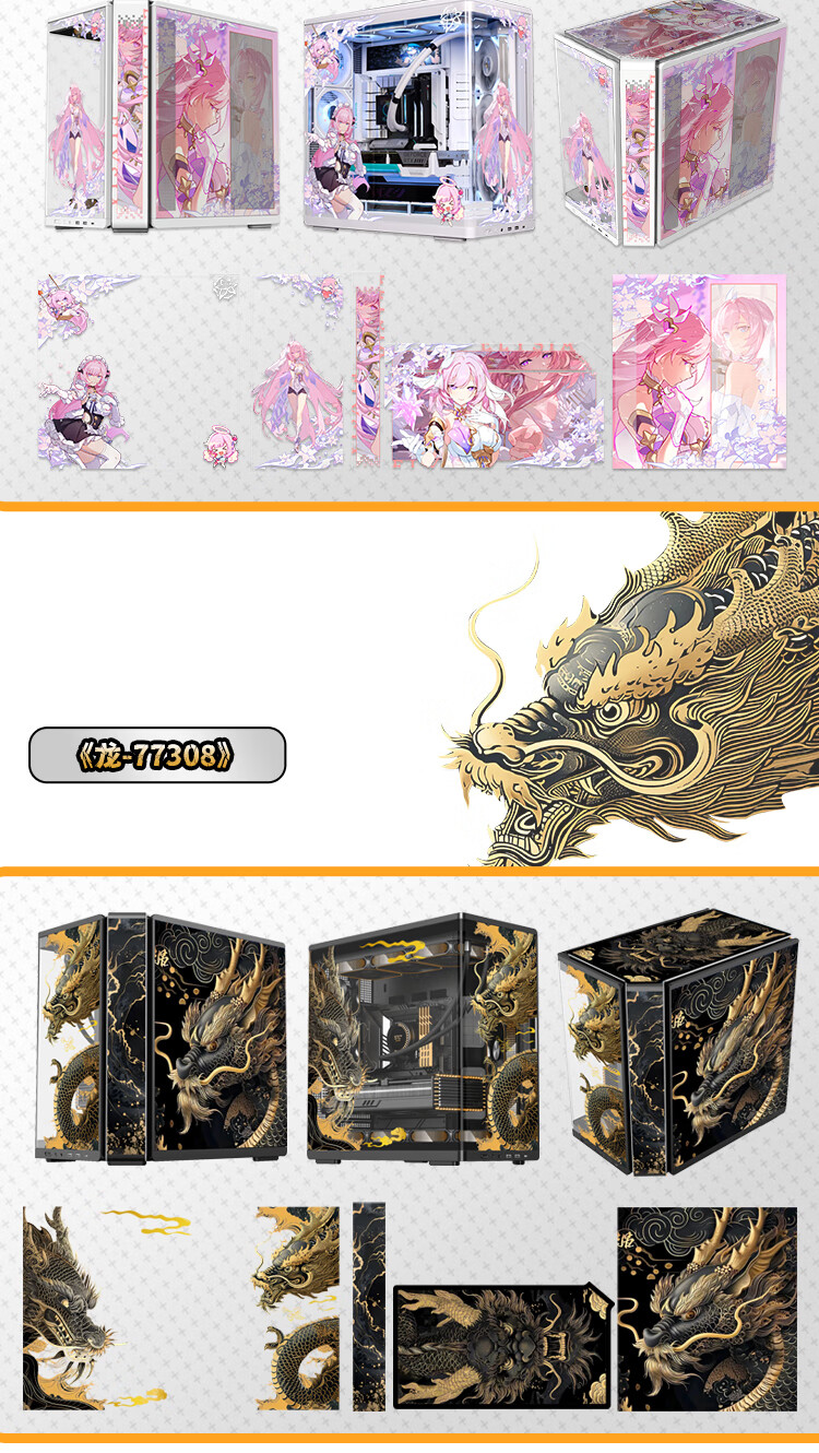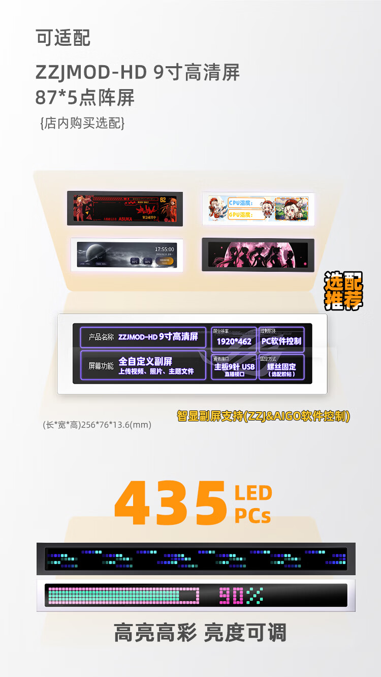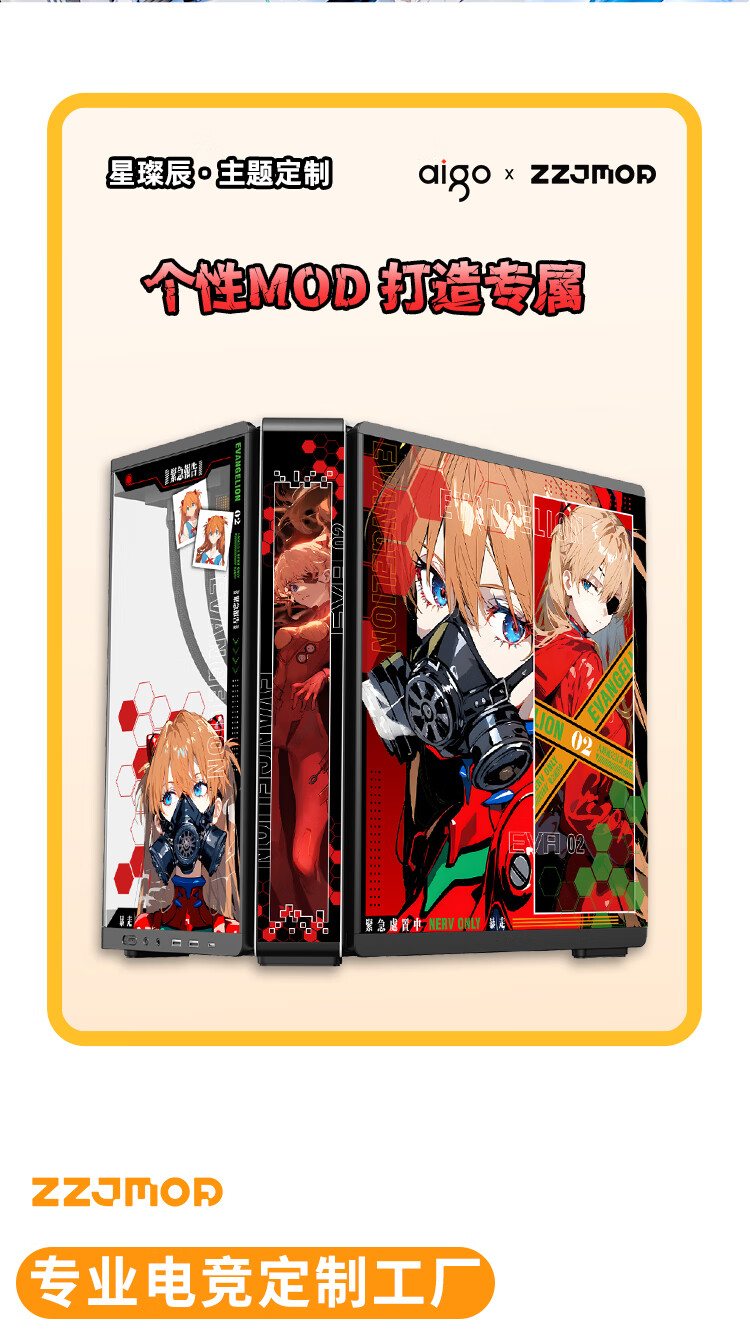 爱国者(aigo)星璨辰动漫主题定制机箱曲面玻璃海景房副屏屏显游戏电竞台式电脑主机箱EATX左右分仓双360 HD9.2寸高清屏【白色】