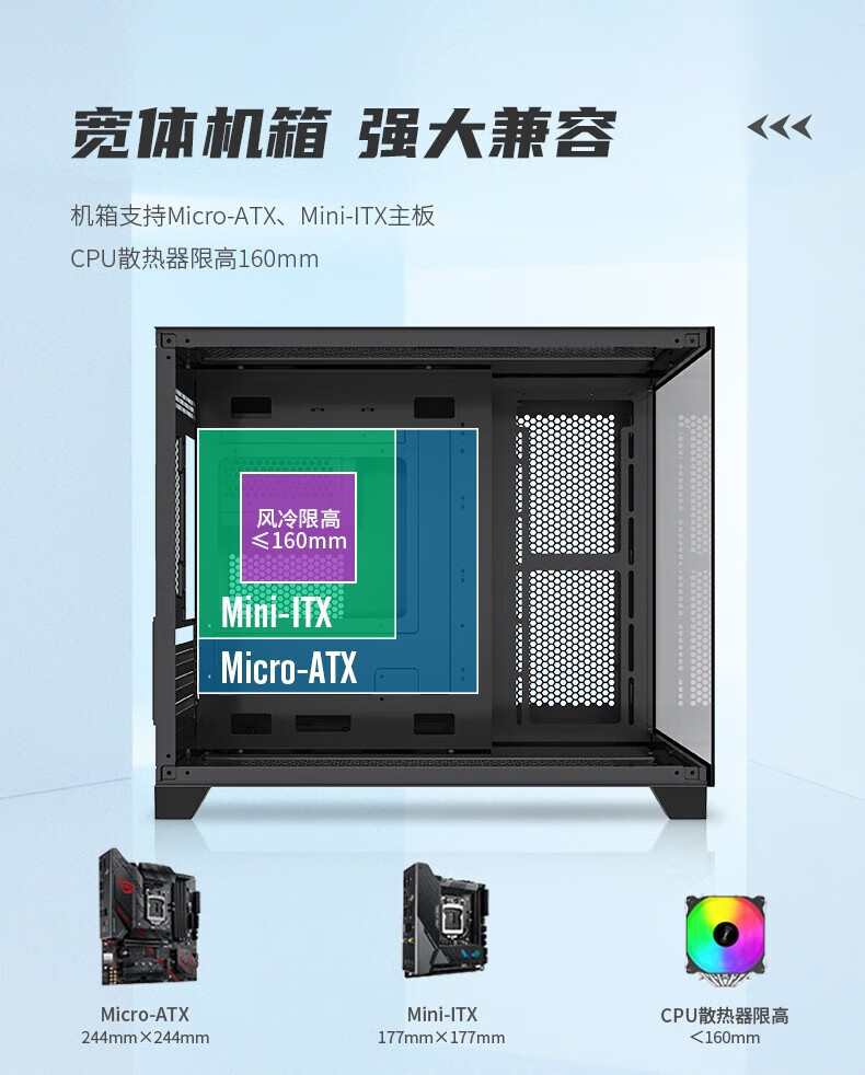 航嘉(Huntkey)S960暴风雪X全景版电脑主机箱海景房机箱(双面钢化玻璃/左右分区/360水冷/9个风扇位/M-ATX主板) 百盛T600全景版-白色