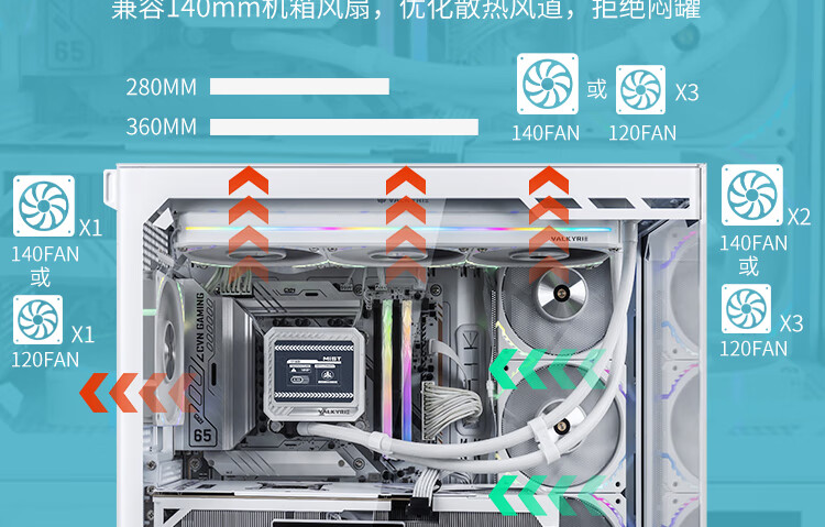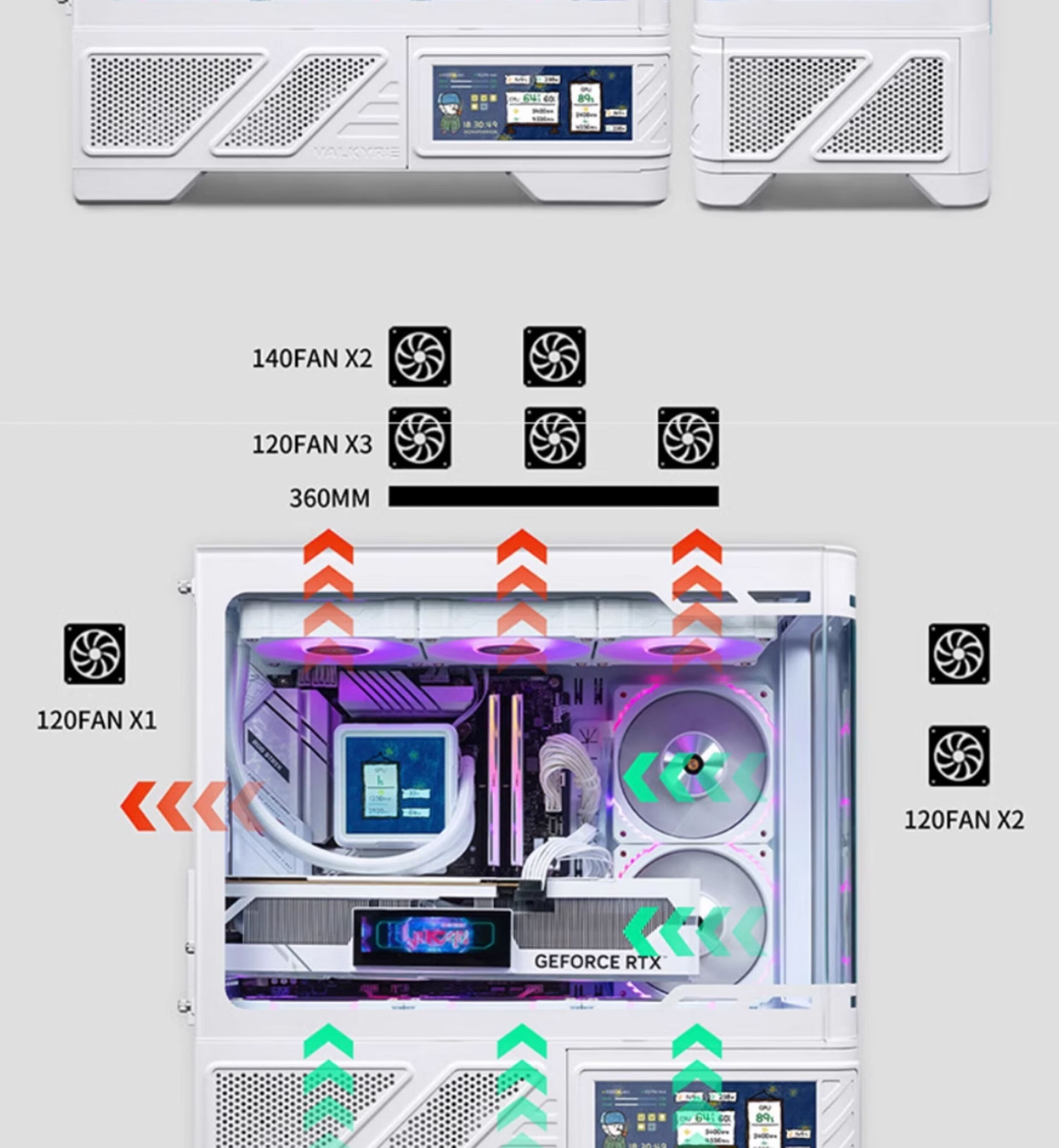 Valkyrie VK03/VK03M avec châssis à écran tactile noir/blanc avec vue sur la mer A360 refroidi à l'eau MATX petite carte/ATX grande carte châssis de ventilateur de refroidissement ensemble de trois pièces Valkyrie VK03M écran tactile blanc