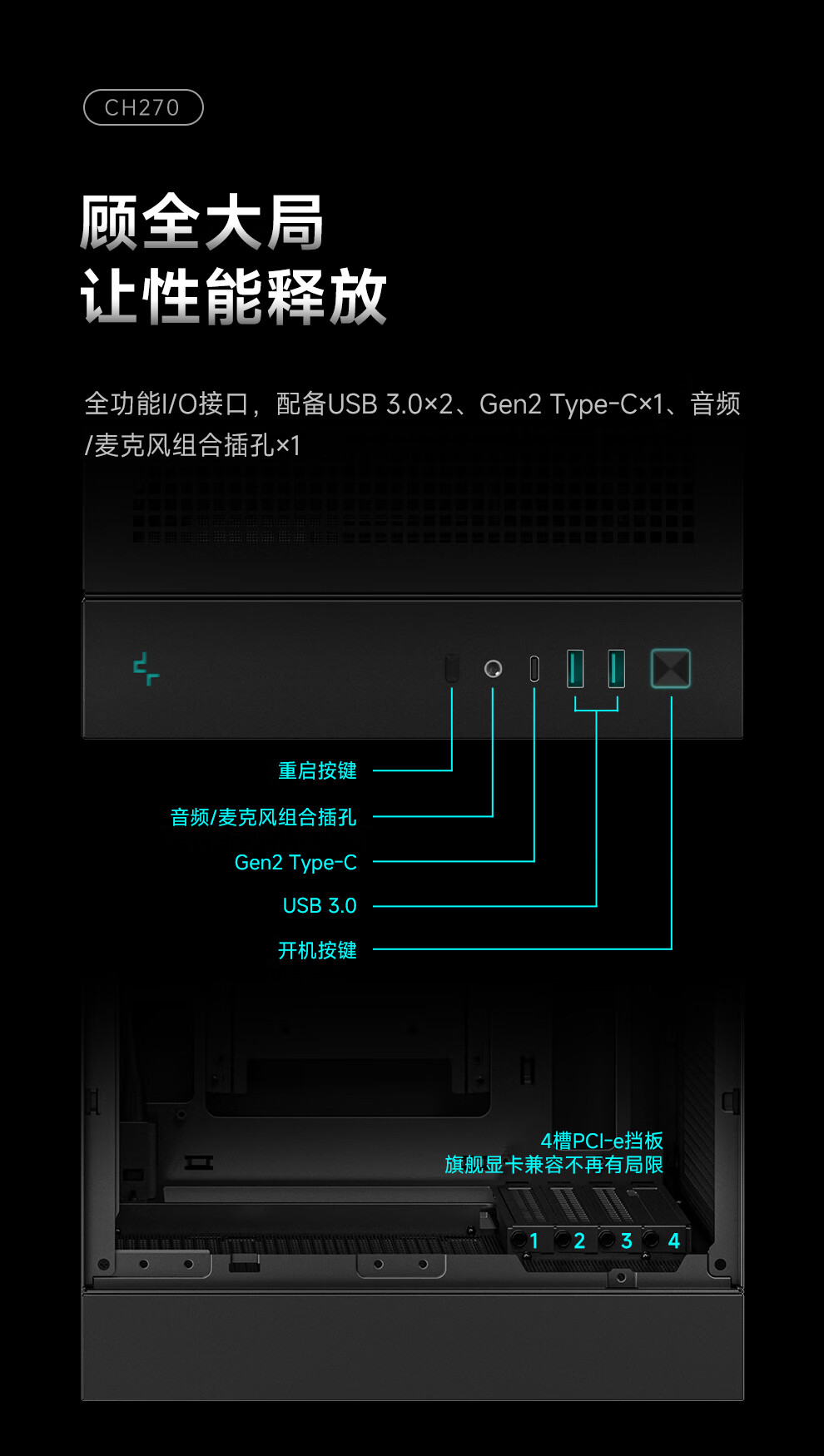 九州风神(DEEPCOOL)CH270机箱(兼容M-ATX主板/388mm显卡/174mm散热限高/360水冷/垂直风道) CH270白色