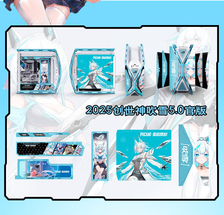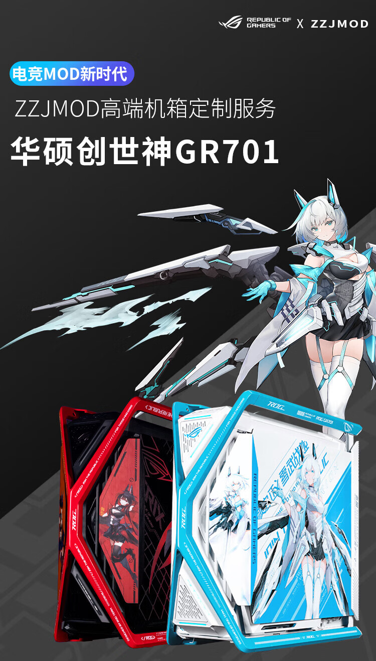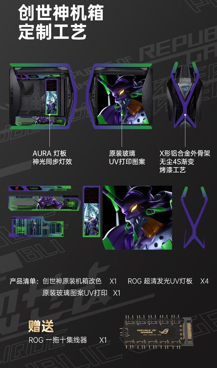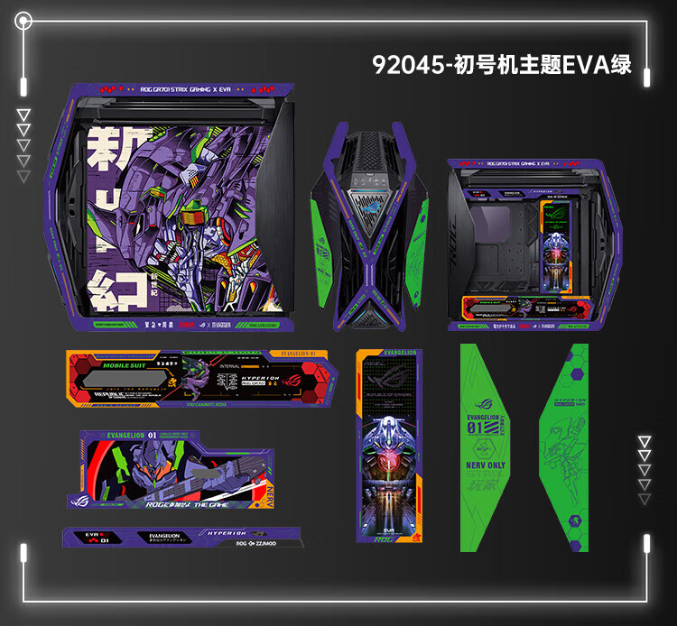 ASUS ROG GR701 God of Creation Weißes Gehäuse Fubuki EVA-Serie Kundenspezifischer UV-Druck Farbwechsel Full-Tower-Thema Kundenspezifisches Gehäuse Wildleder Kundenspezifisches ARGB Vollständiger Satz Lichtpaneele Einteiliges weißes Gehäuse + UV-Lichtpaneel Bestehende Lösungsanpassung