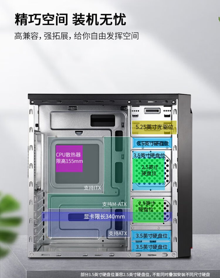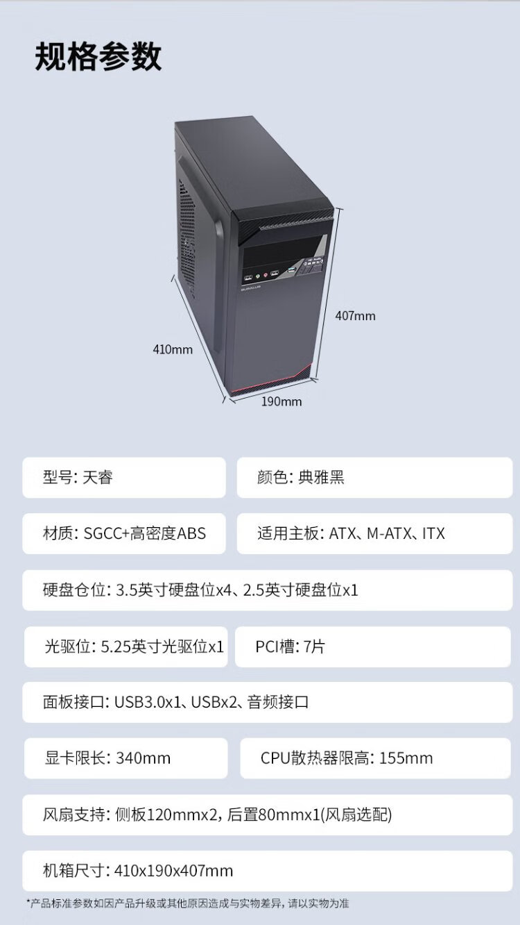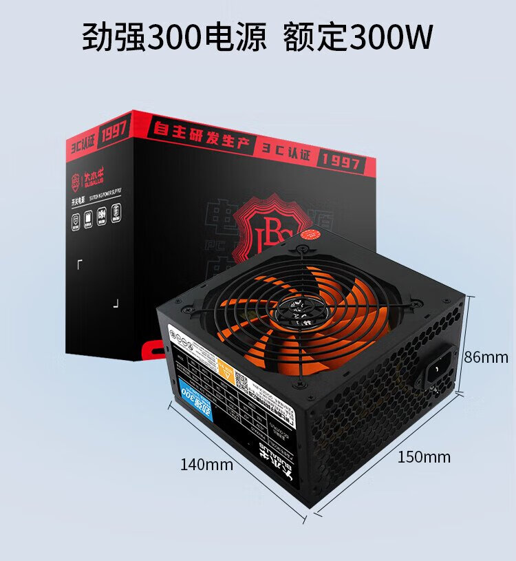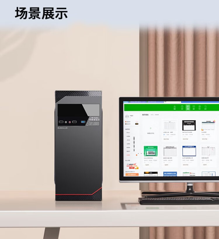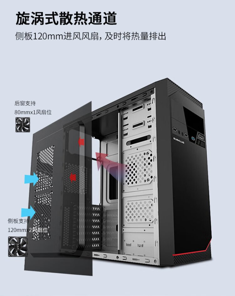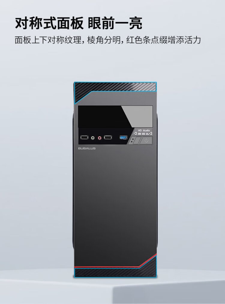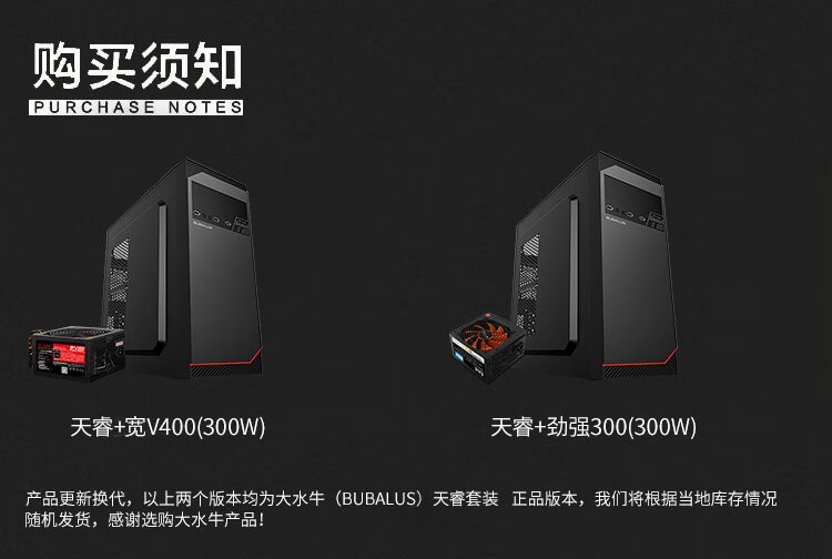 大水牛(BUBALUS)1008商务机箱+劲强300台式电脑机电套装 (带光驱位/配300W电源/支持ATX主板/支持背线/家用办公)
