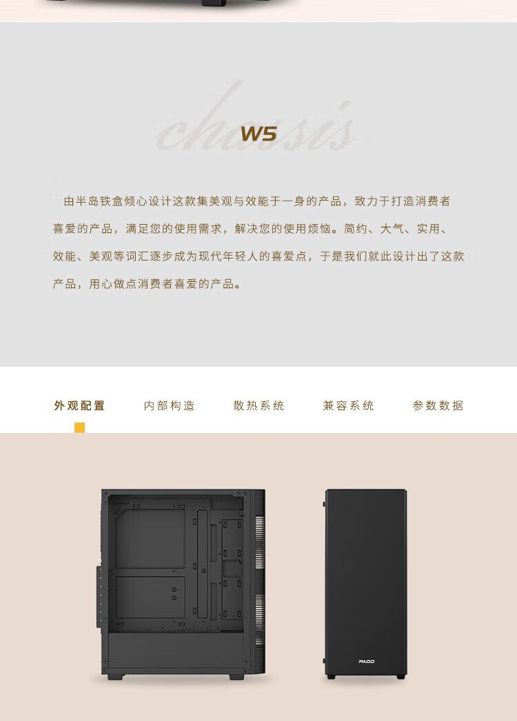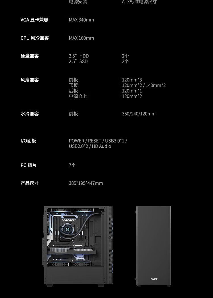 Peninsula Iron Box (PADO) W5 black gaming computer desktop main case (supports 8 fans/360 water cooling/ATX motherboard/wide body chassis)