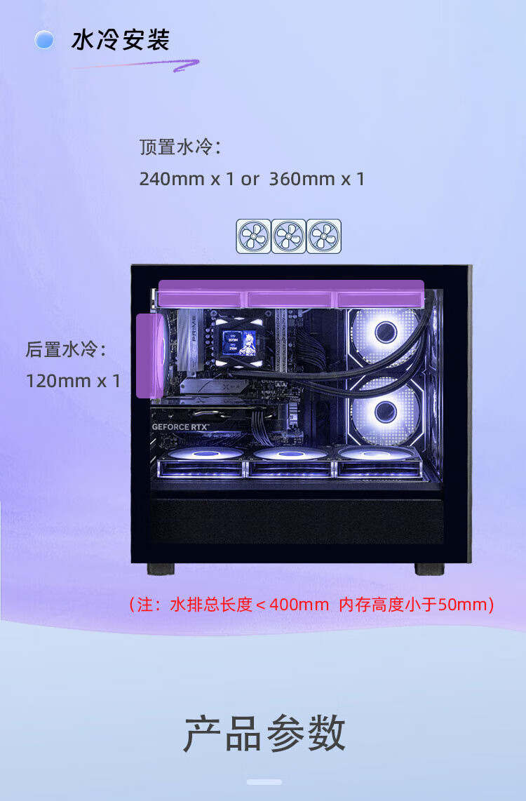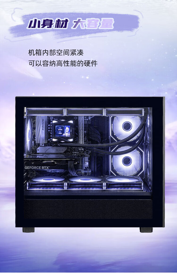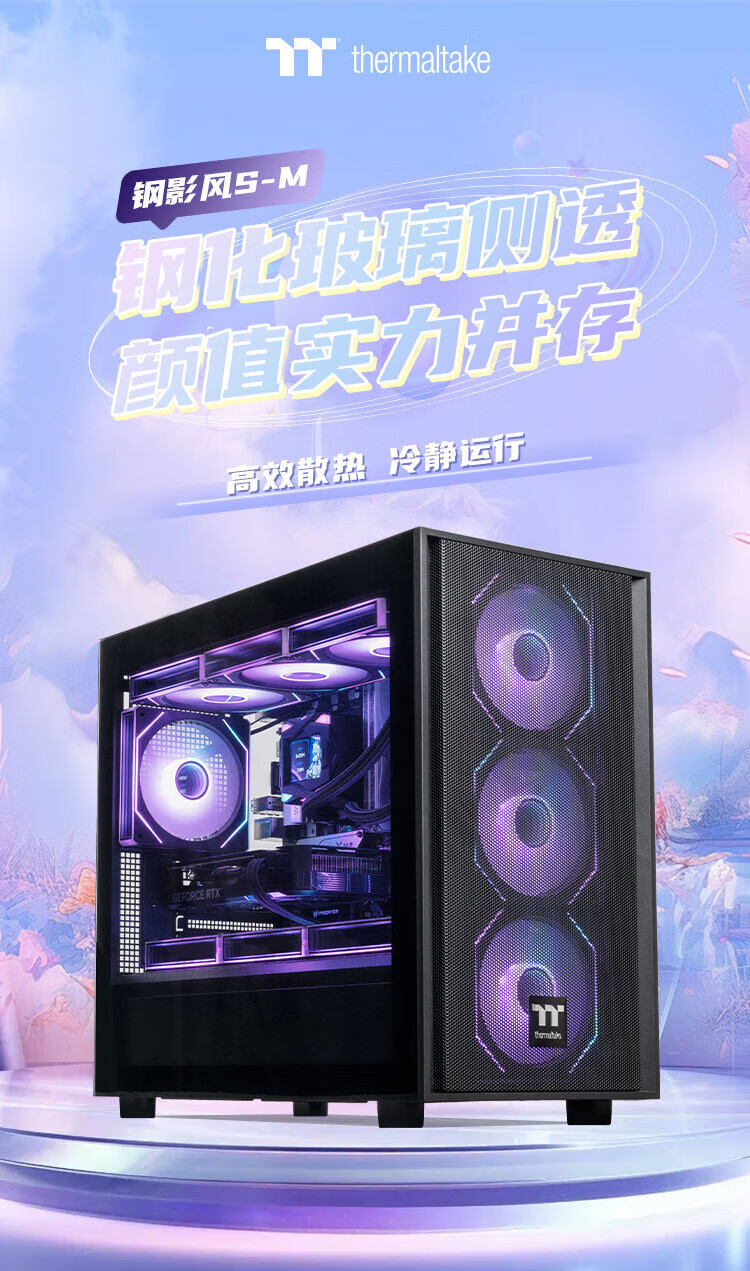 Thermaltake(Tt)钢影风S-M 海景房机箱 电脑主机 黑色(M-ATX主板/支持360水冷/12风扇位)