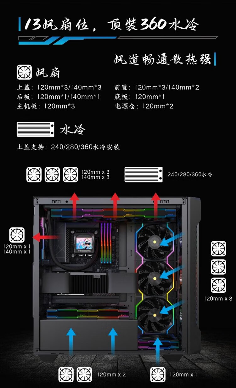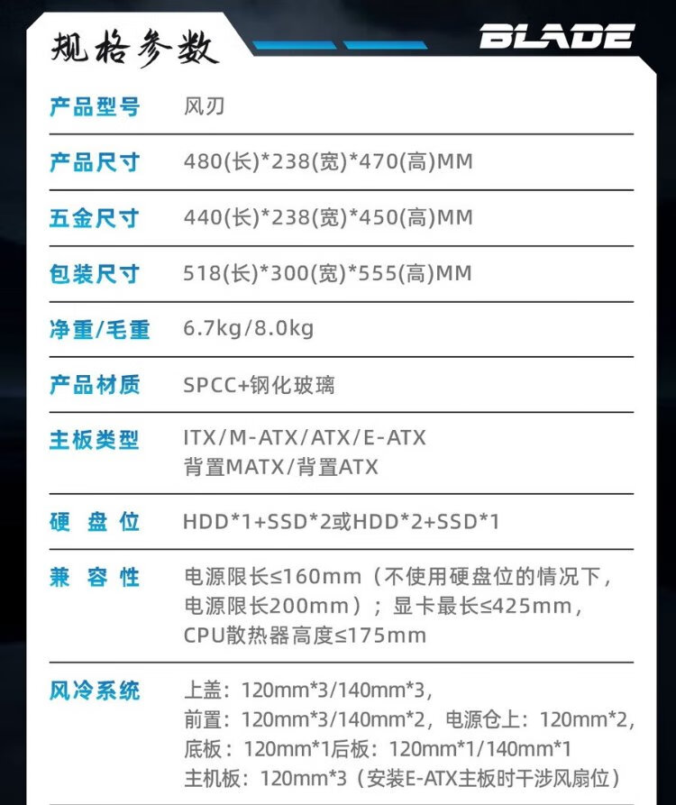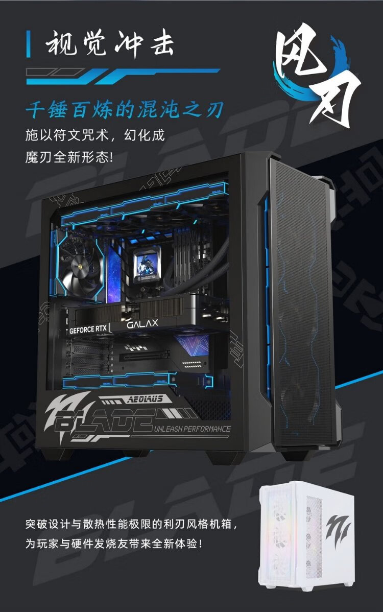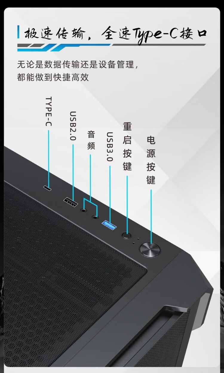 影驰风刃游戏办公台式电脑机箱白色(ATX/TYPE-C/快拆/兼容背插主板/显卡竖装/一体式跳线/零件盒)