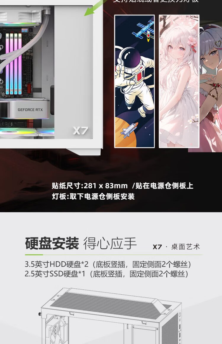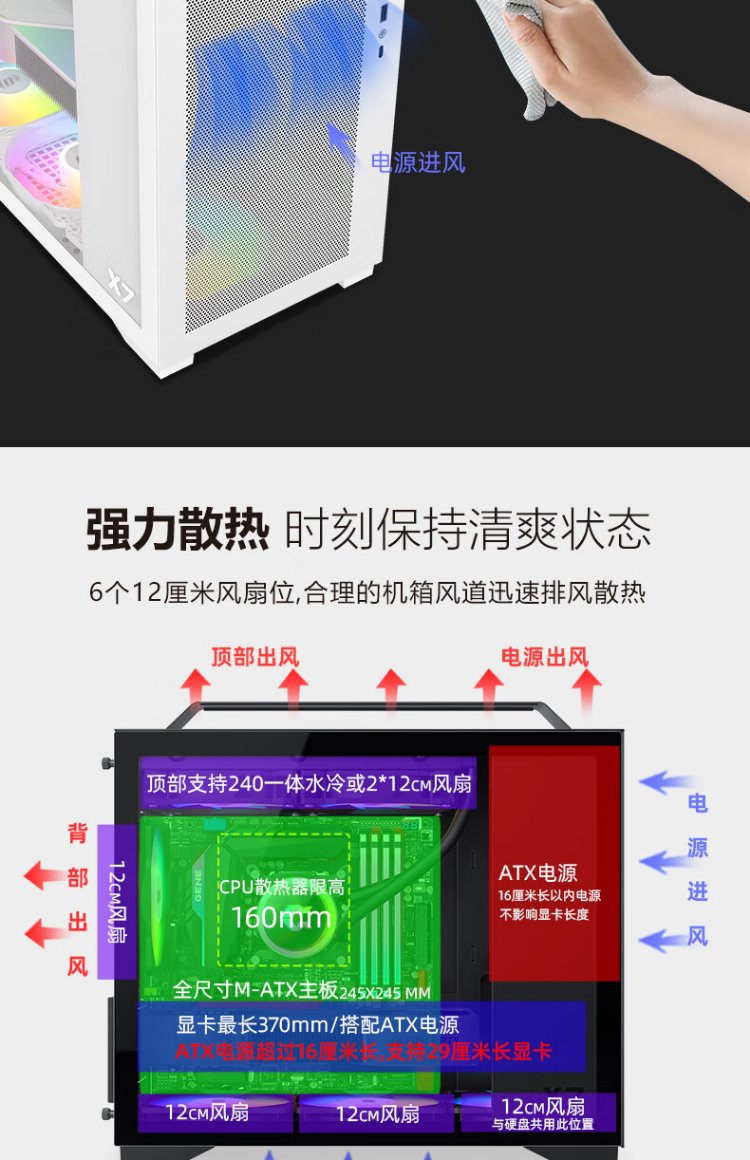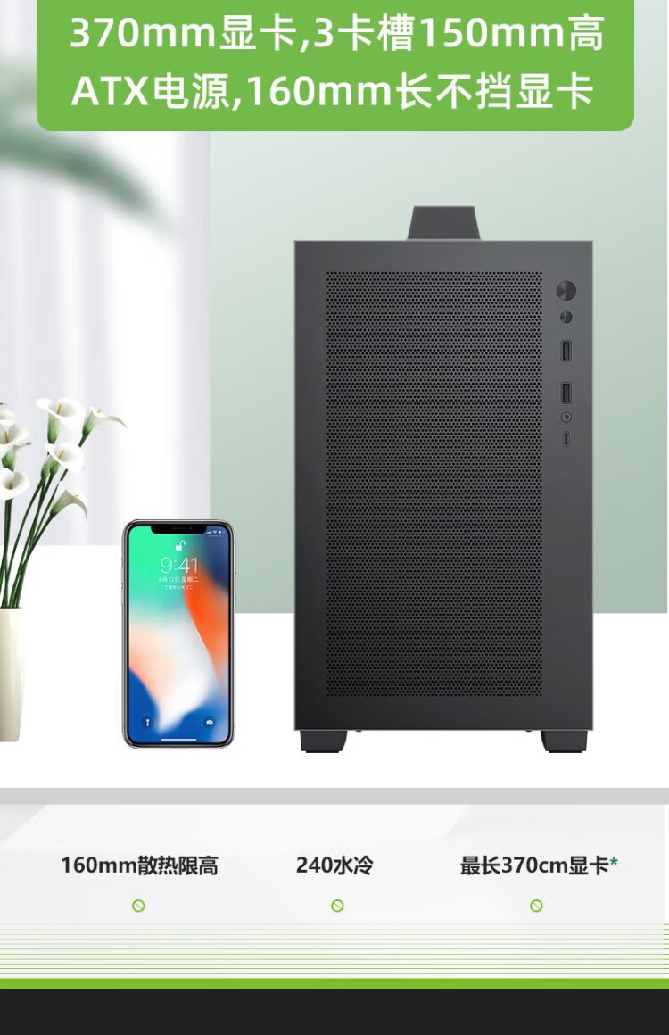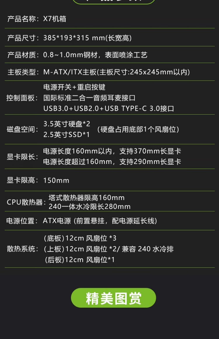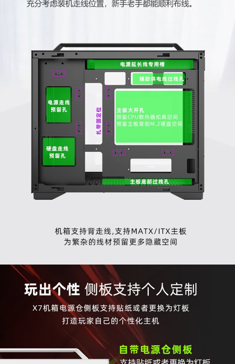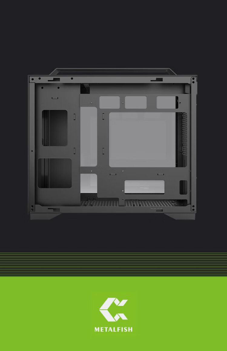 METALFISH X7 backline chassis, quick release side panel, dense hole design, supports MATX motherboard, 240 water cooling, large portable X7 black chassis